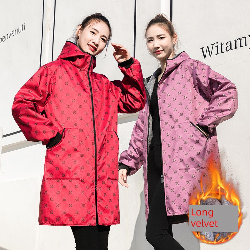 Adult Fleece-lined Work Clothes Thickened Heattech Waterproof Cover Clothes Fashion Outwear Windproof Long Sleeve Apron For Home Men and Women