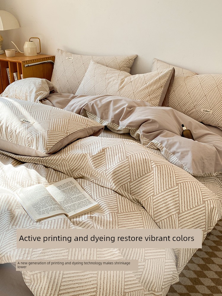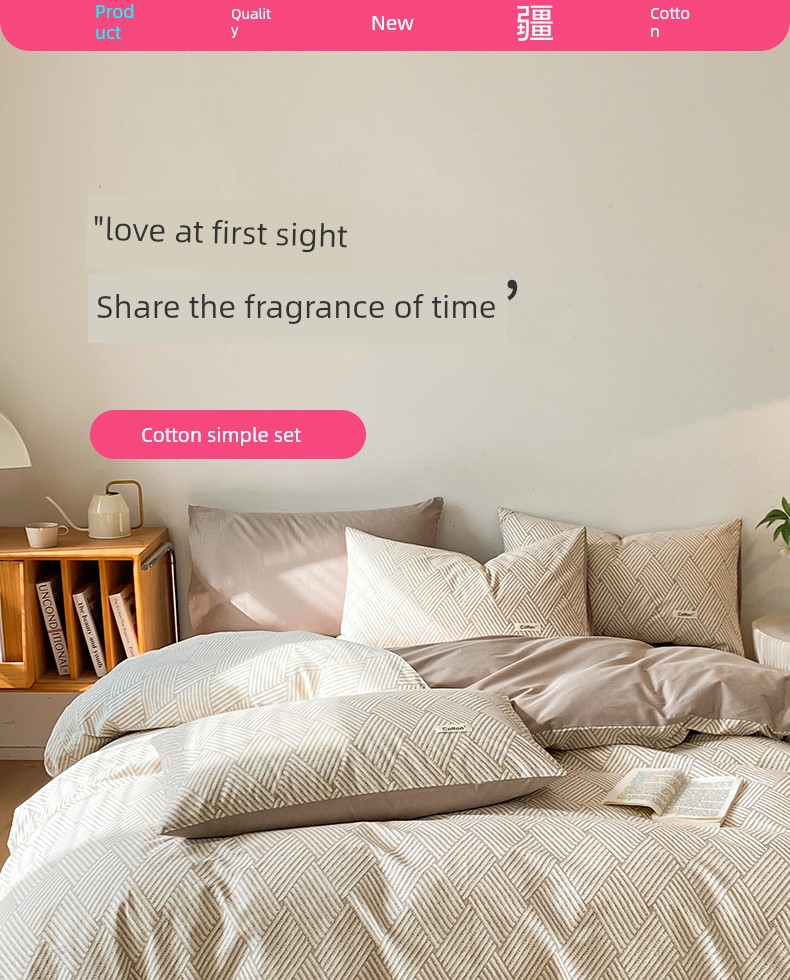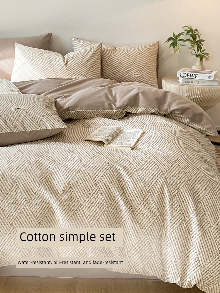 Jialiya Pure Cotton Four-Piece Set, All-Cotton Duvet Cover, Bed Sheet, Single Bed Bedding, Student Dormitory Fitted Sheet Style Three-Piece Set
