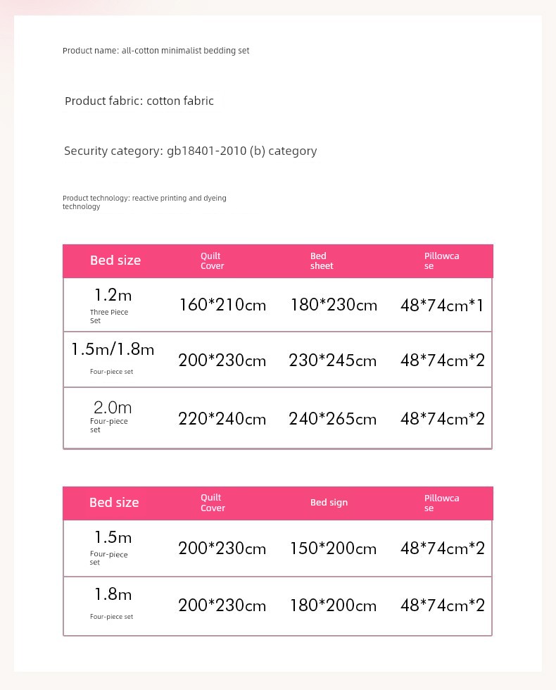 1.8m Bed [Sheet Set of Four] - Suitable for 200×230 Quilt