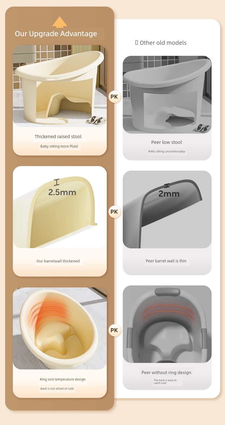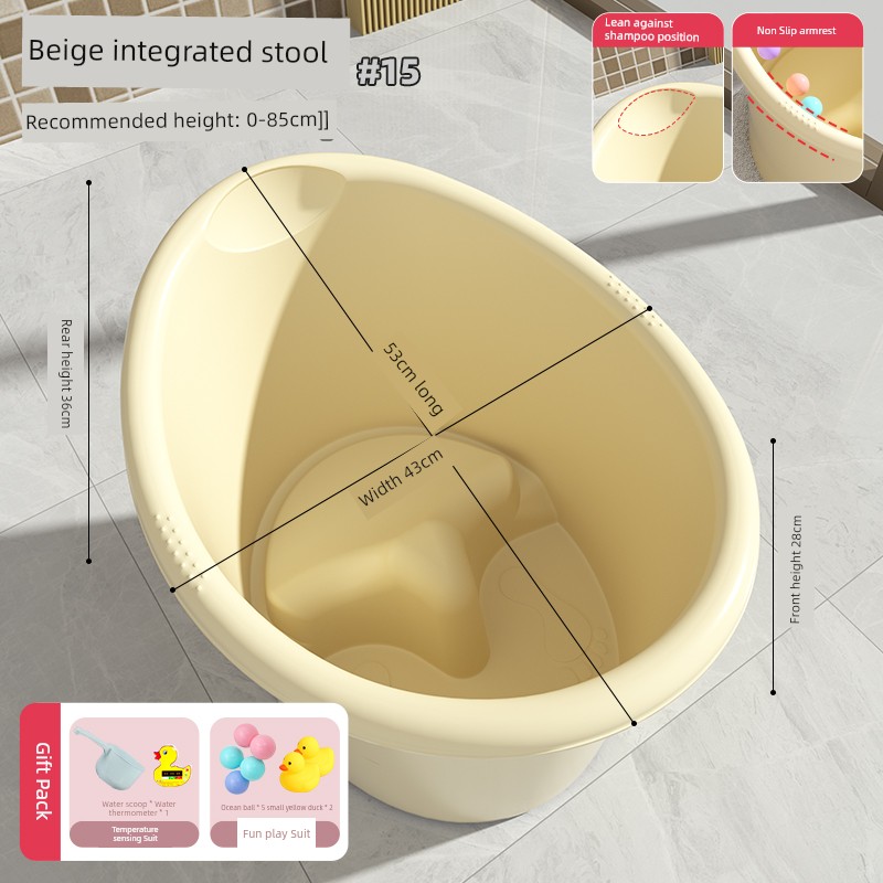14#(Oversized and Deepened with Drainage Holes) Beige Integrated Stool [0-15 Years Old] Can Sit on