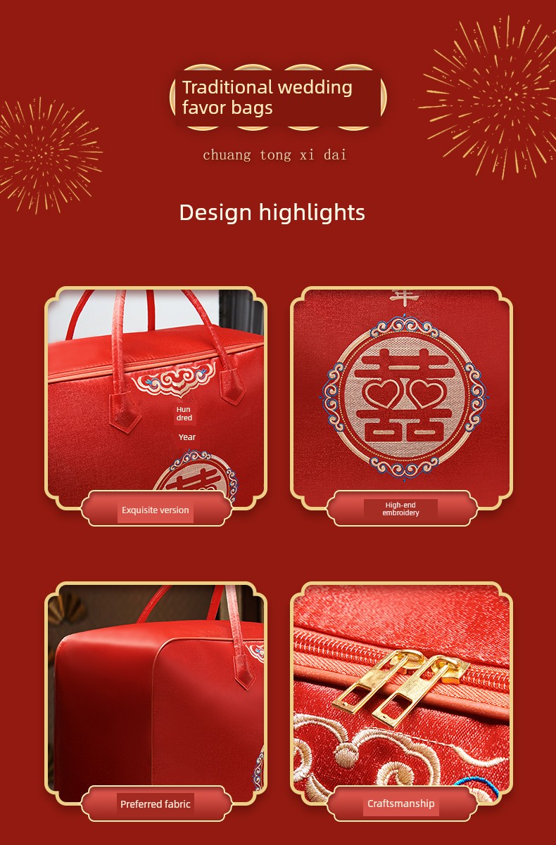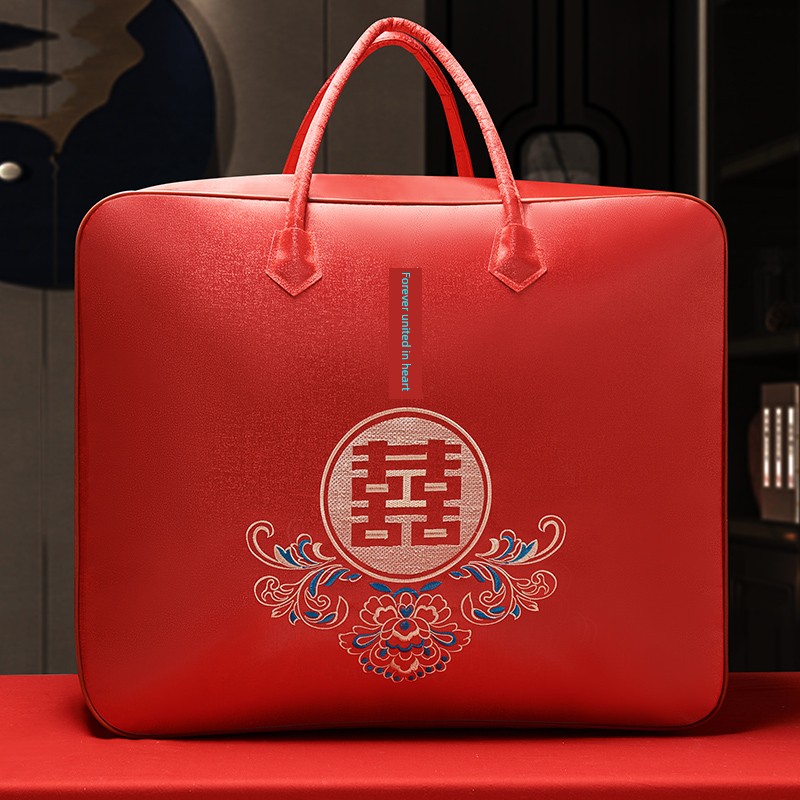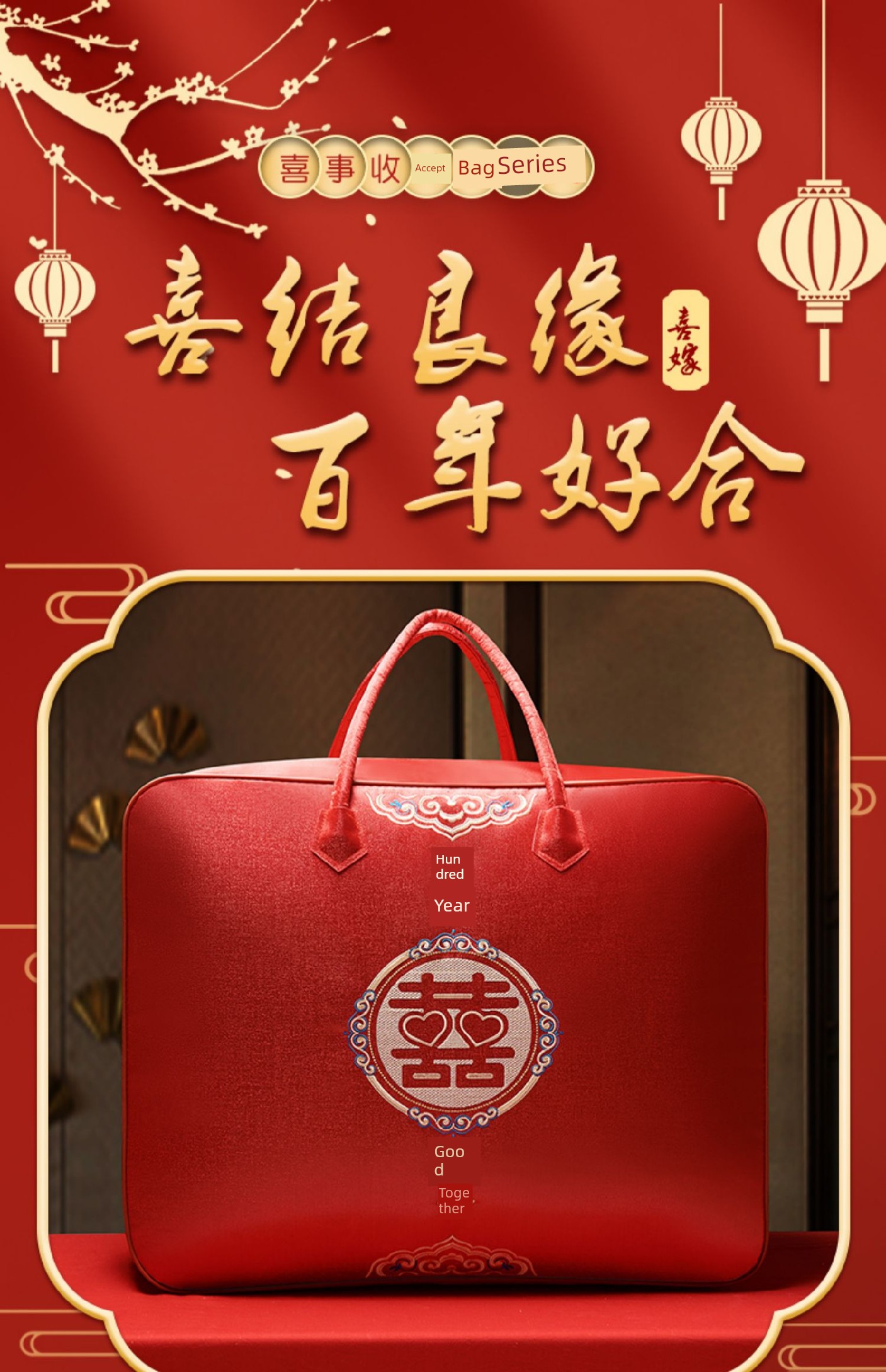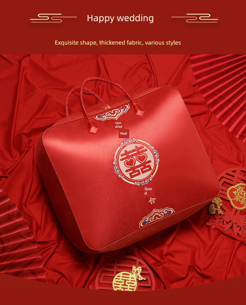 Wedding Dowry Quilt Storage Bag Red Wedding Four-Piece Bedding Set Quilt Tote Bag Cotton Quilt Packaging Bag