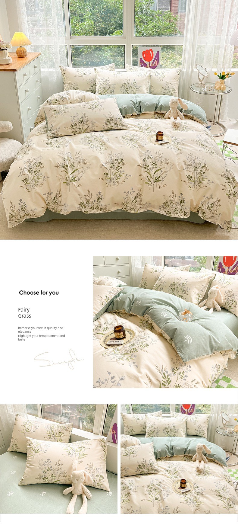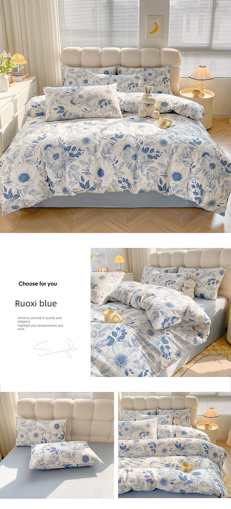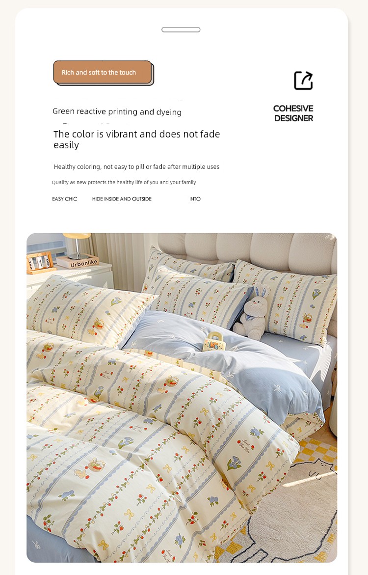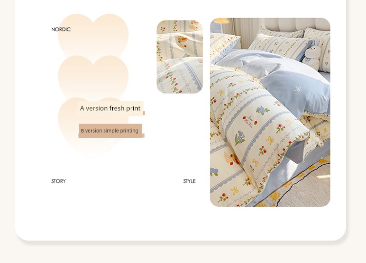 1.5m Four-Piece Fitted Sheet Set: [200*230cm Quilt Cover + 150*200cm Fitted Sheet + Pair of Pillowcases]