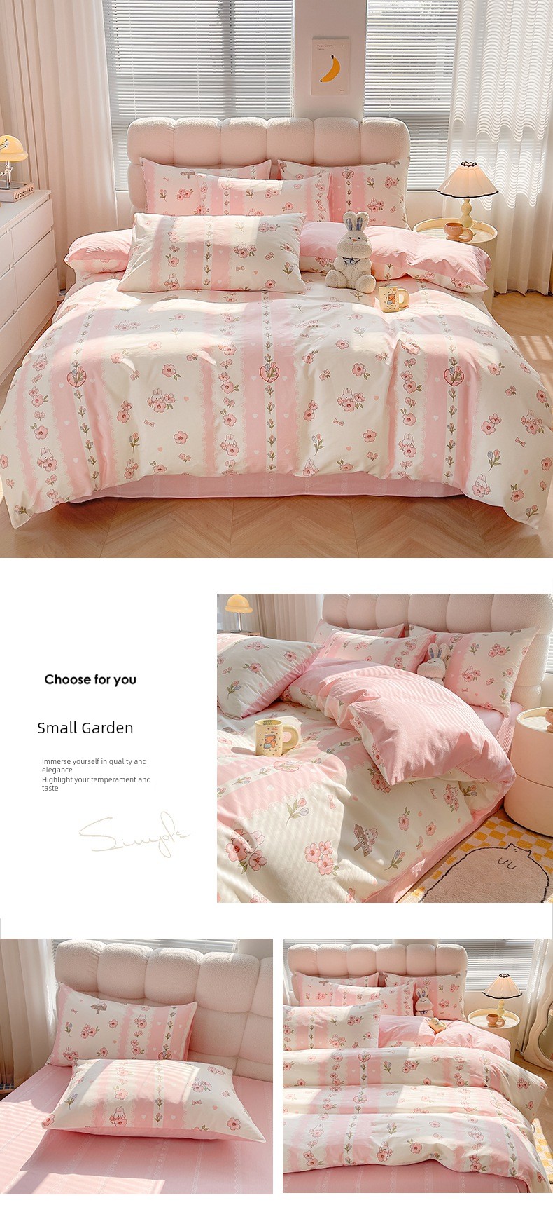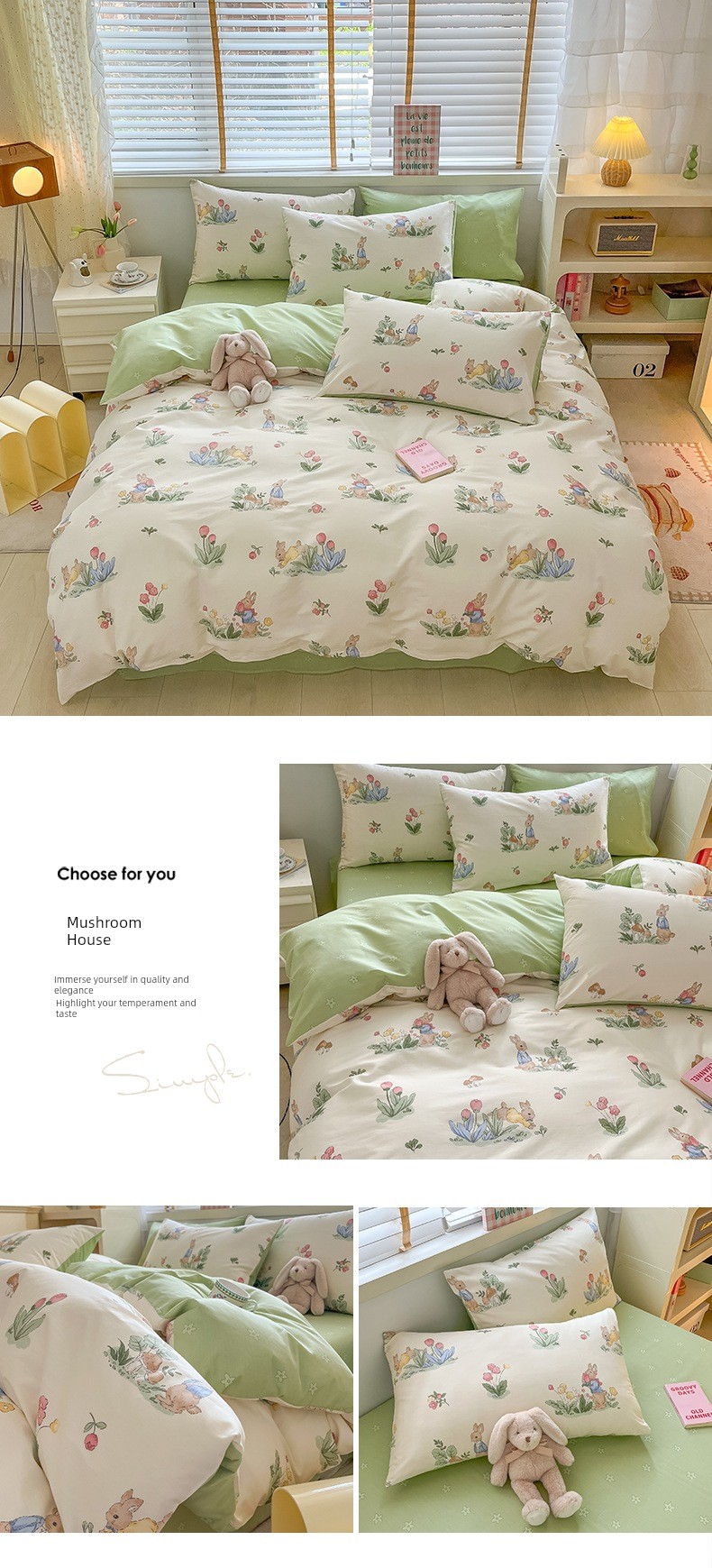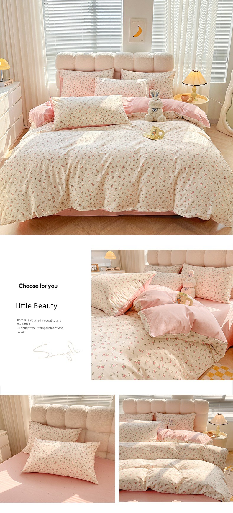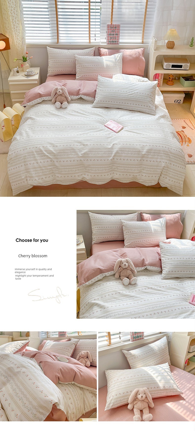 1.5m Four-Piece Fitted Sheet Set: [200*230cm Quilt Cover + 150*200cm Fitted Sheet + Pair of Pillowcases]