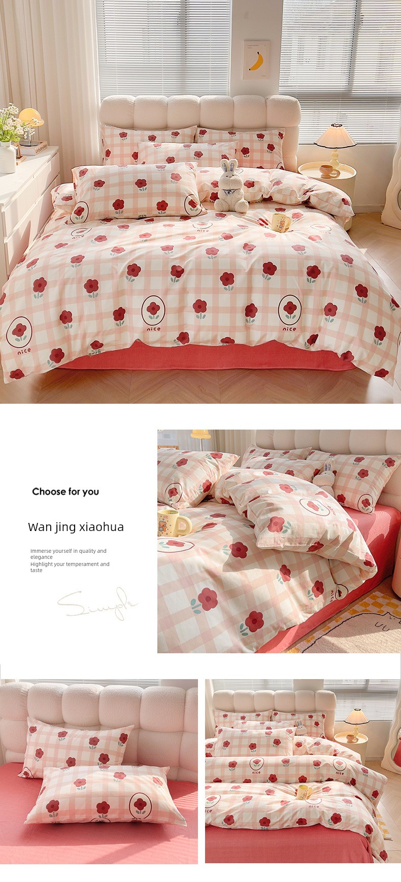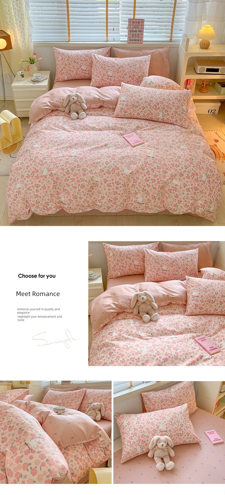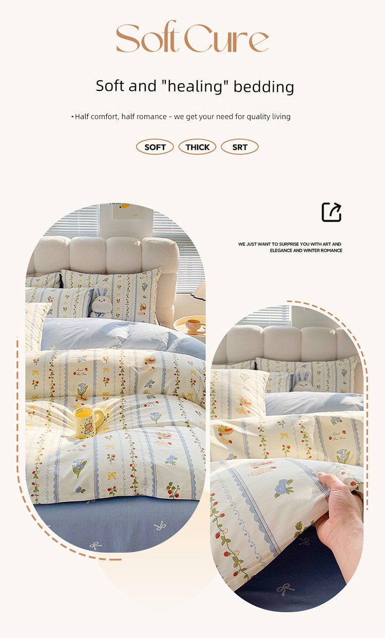 1.5/ 1.8m Bed Sheets Four-Piece Set: [200*230cm Quilt Cover + 230*250cm Bed Sheets + Pair of Pillowcases]
