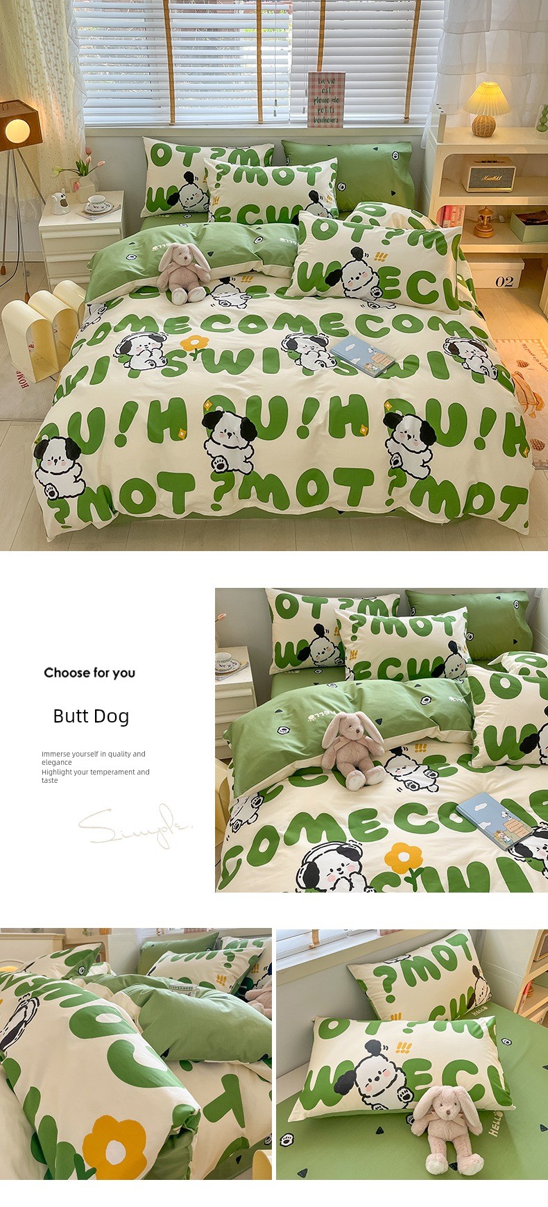 1.8m Quilt Cover Plus Four-Piece Fitted Sheet Set: [220*240cm Quilt Cover + 180*200cm Fitted Sheet + Pair of Pillowcases]