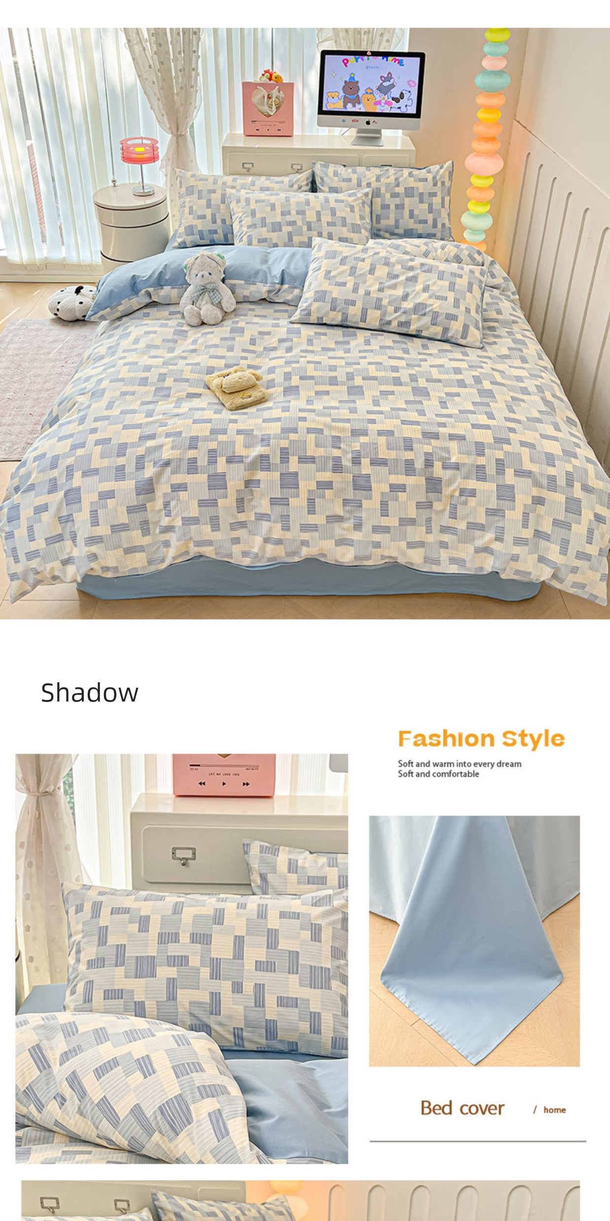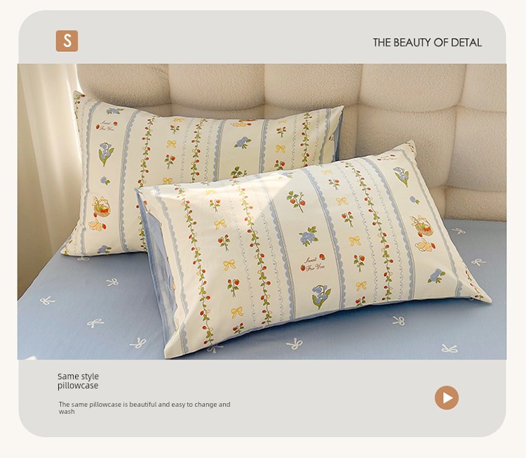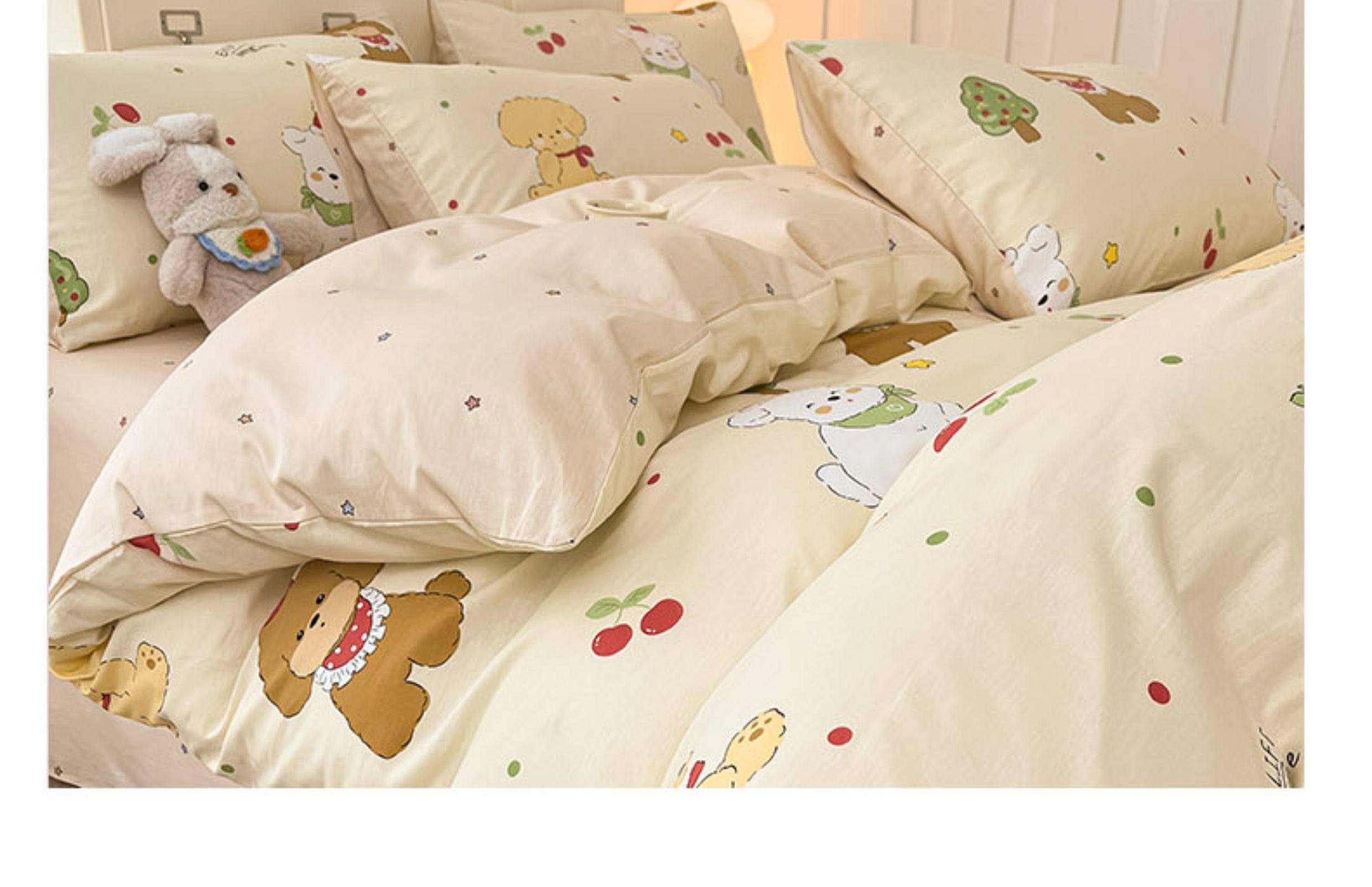 1.2m Three-Piece Fitted Sheet Set: [160*210cm Quilt Cover + 120*200cm Fitted Sheet + One Pillowcase]