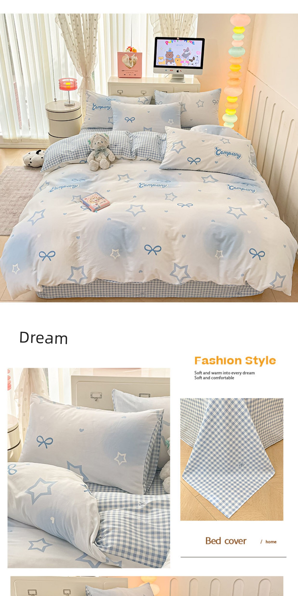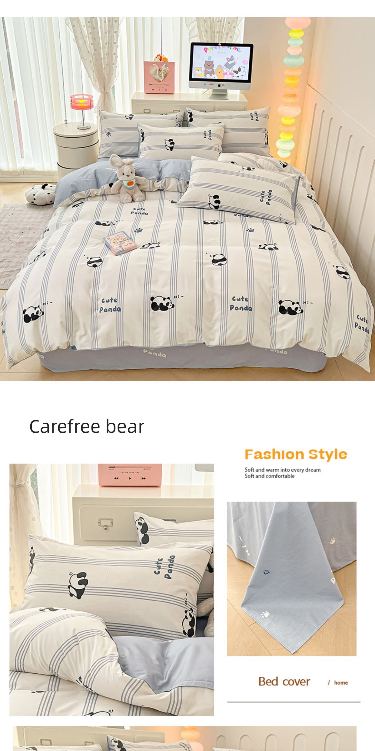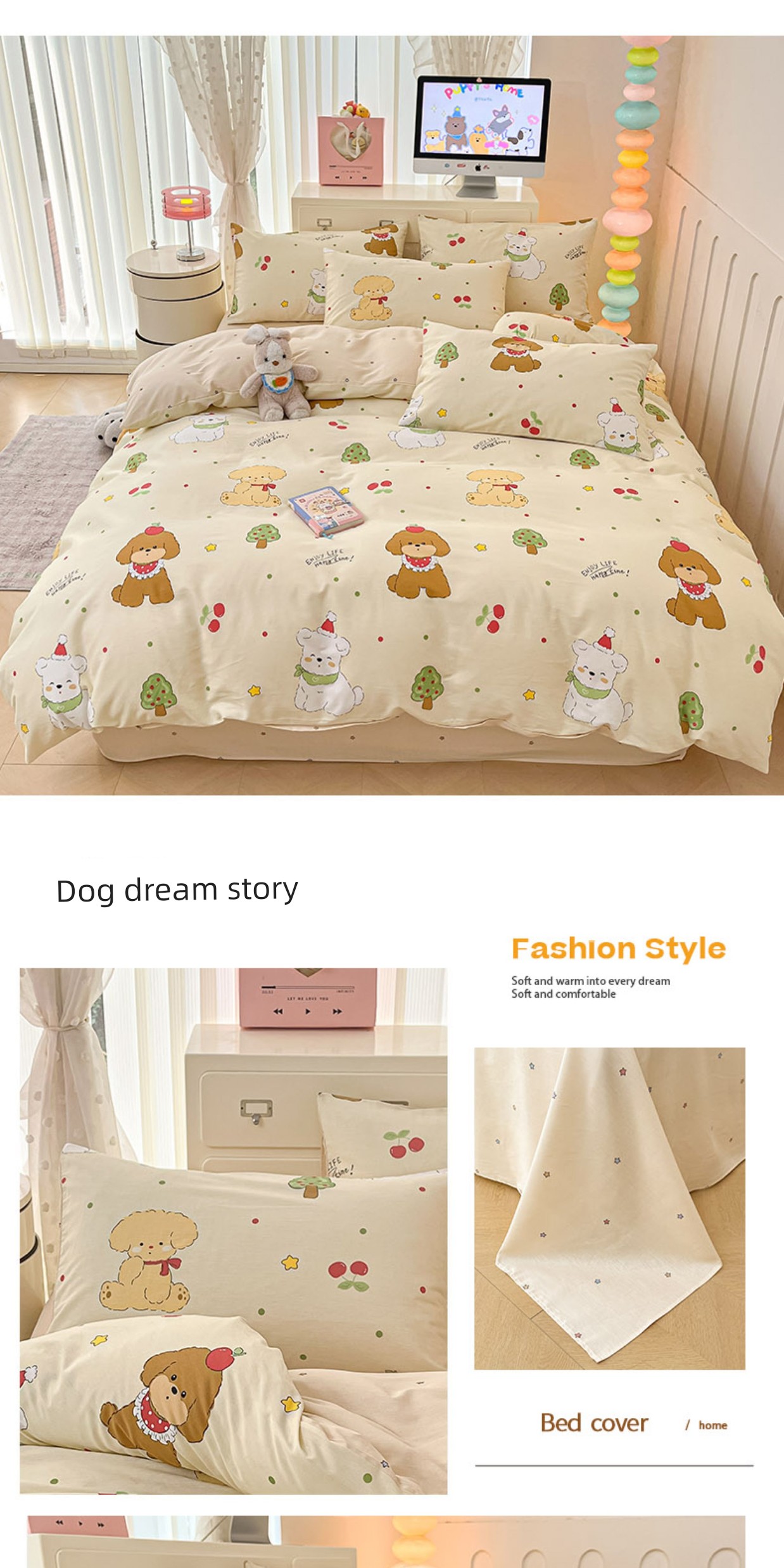 1.2m Three-Piece Fitted Sheet Set: [160*210cm Quilt Cover + 120*200cm Fitted Sheet + One Pillowcase]