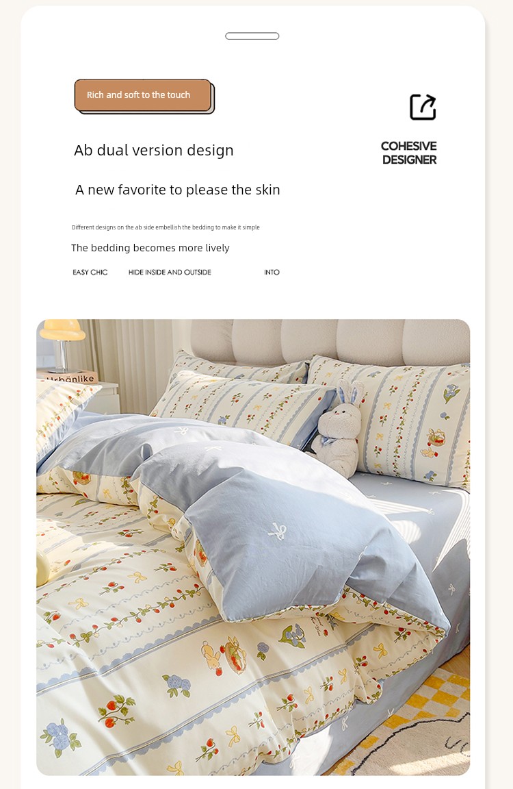 1.35m Bed Sheets Four-Piece Set: [180*220cm Quilt Cover + 230*250cm Bed Sheets + Pair of Pillowcases]