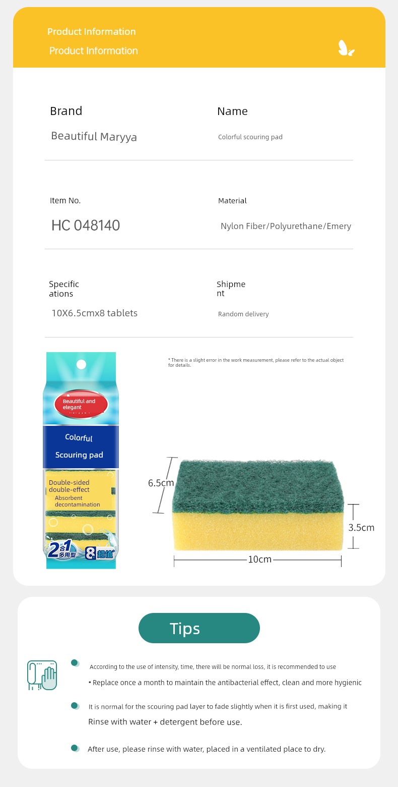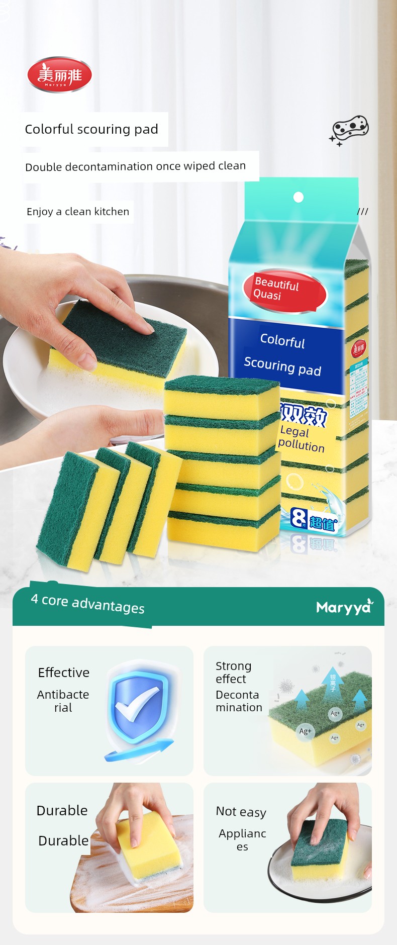 Maryya Scouring Pad Kitchen Dedicated For Home Dishwashing Spong Mop Absorbent Not Easy to Stick Oil Cleaning Sponge Pot Sponge