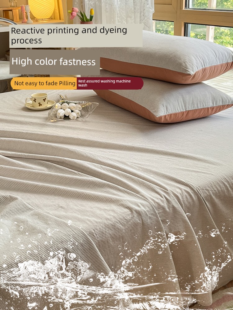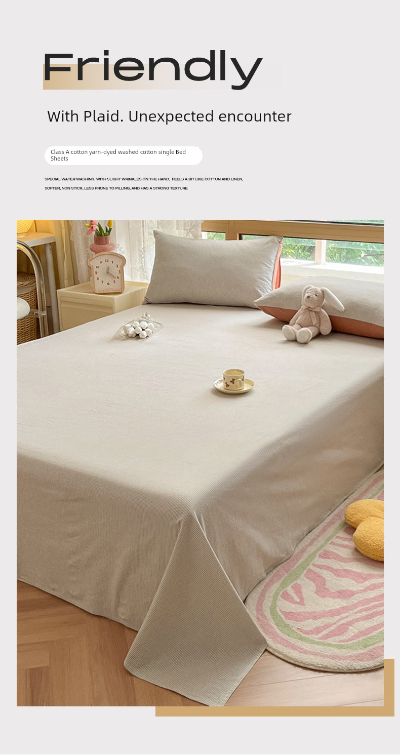 Class A Pure Cotton Washed Cotton Bed Sheet One-Piece All Cotton 100 Student Dormitory Single Bed Sheet Pillowcase Three-Piece Set 3 New Arrival