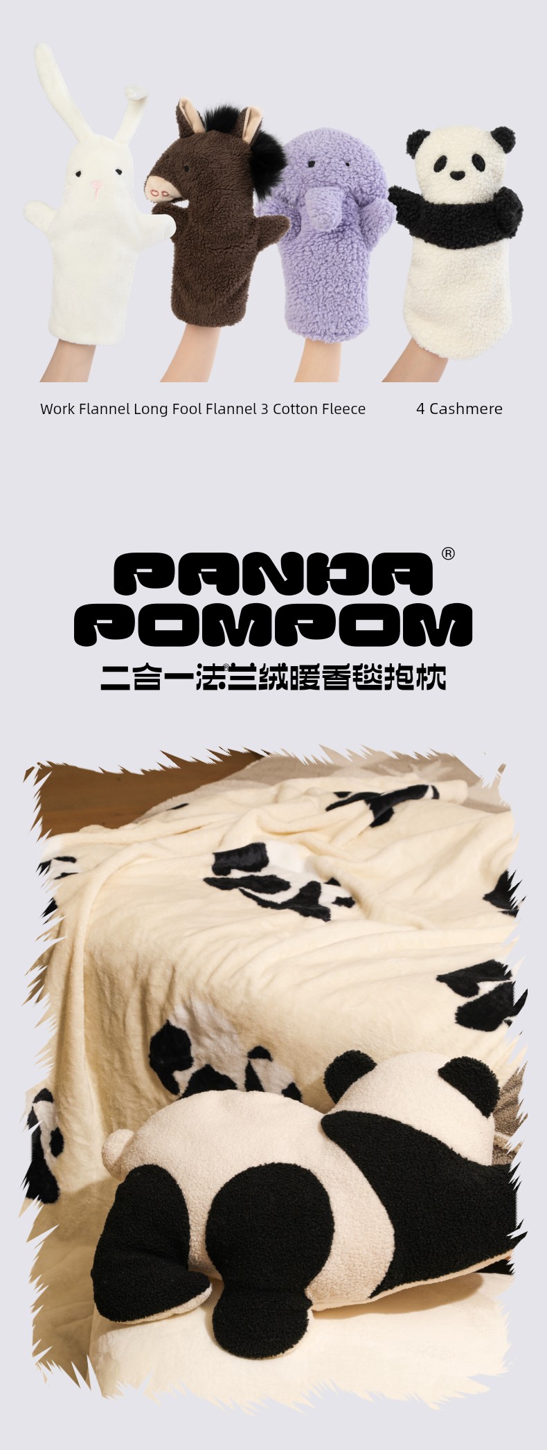 Panda Pompom 2-in-1 Flannel Warm Fragrance Blanket/Pillow