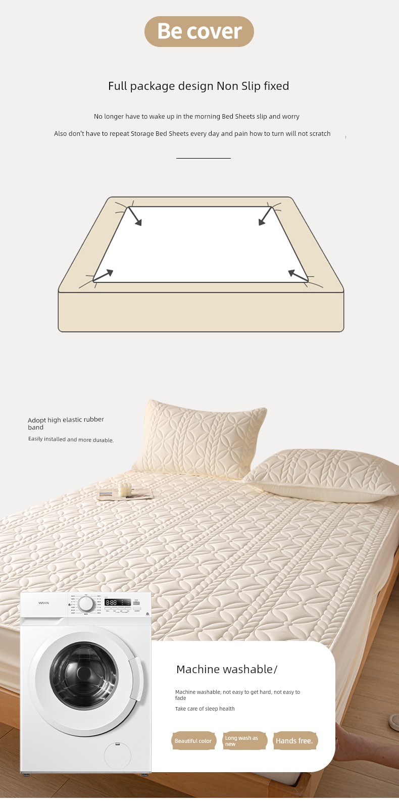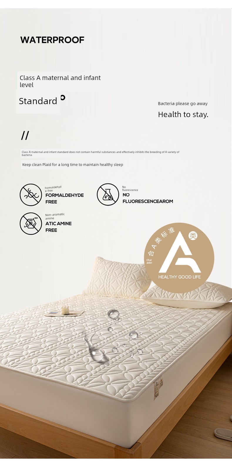 Class A Waterproof to Prevent Leakage of Urine Thickened Fitted Sheet Cover Single Piece Bedspread Mattress Cover Simmons Mattress Protective Cover Non Slip Dust Cover