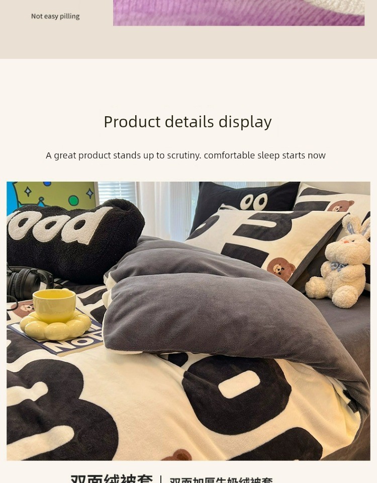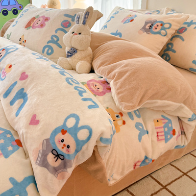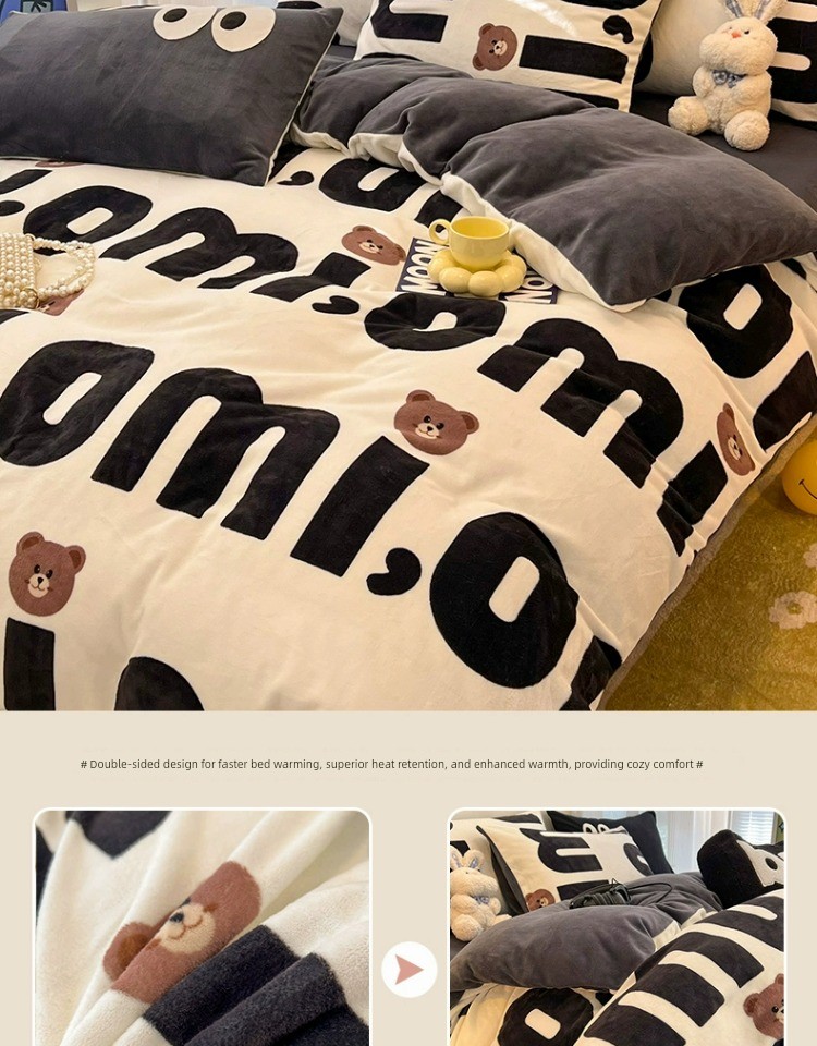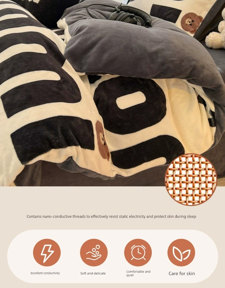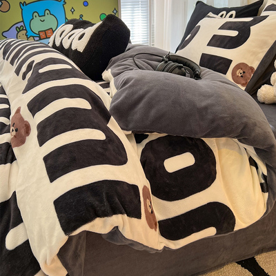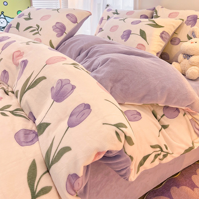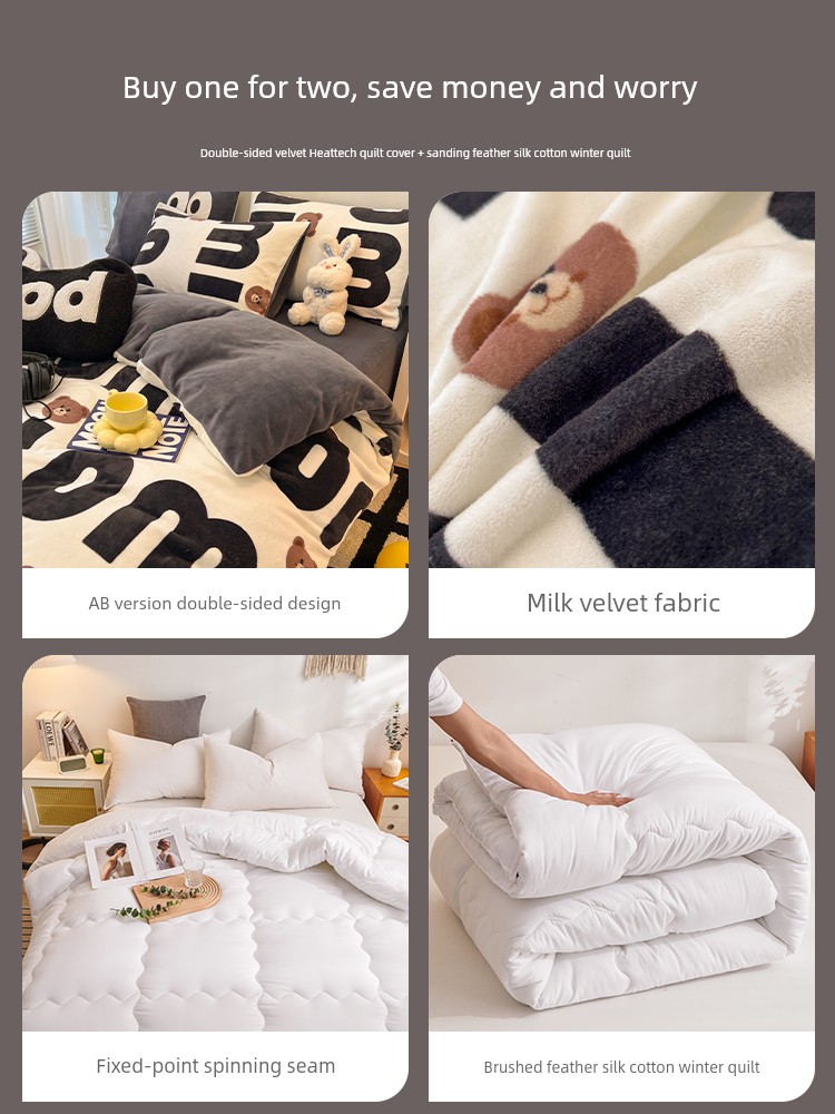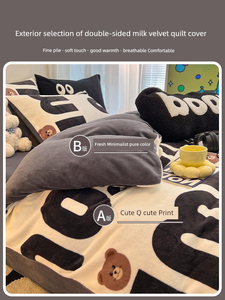 Milk Velvet Winter Quilt Set, Complete Set of Coral Fleece Duvet Cover, Thickened 5kg Warm Winter Quilt Core Cotton Bedding