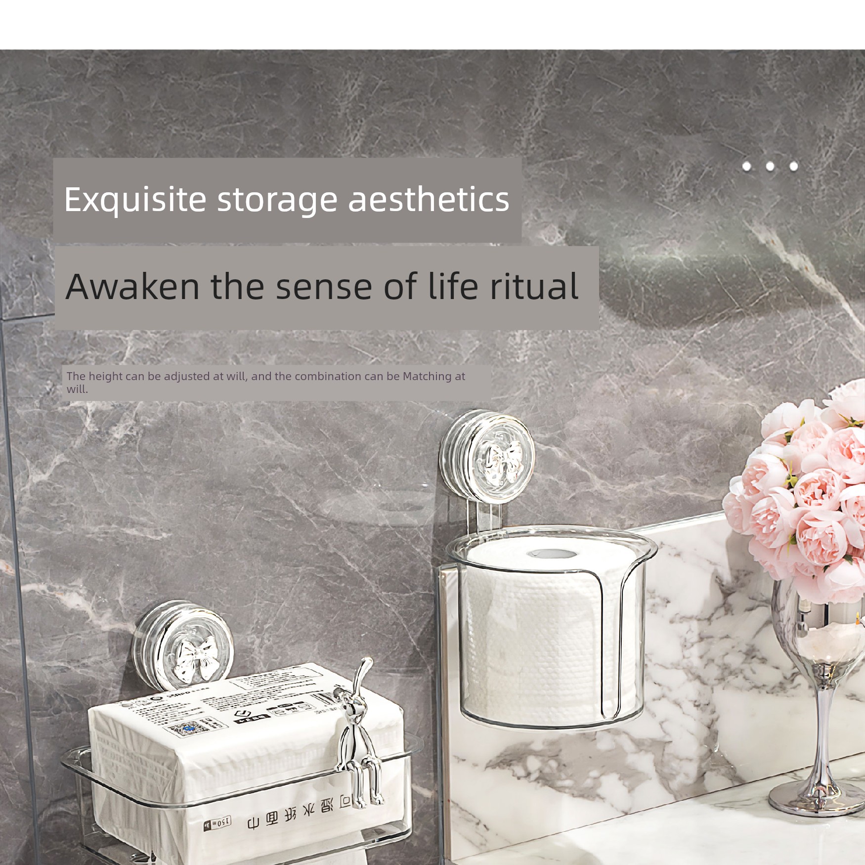 【透灰银】吸盘带盖抽纸盒