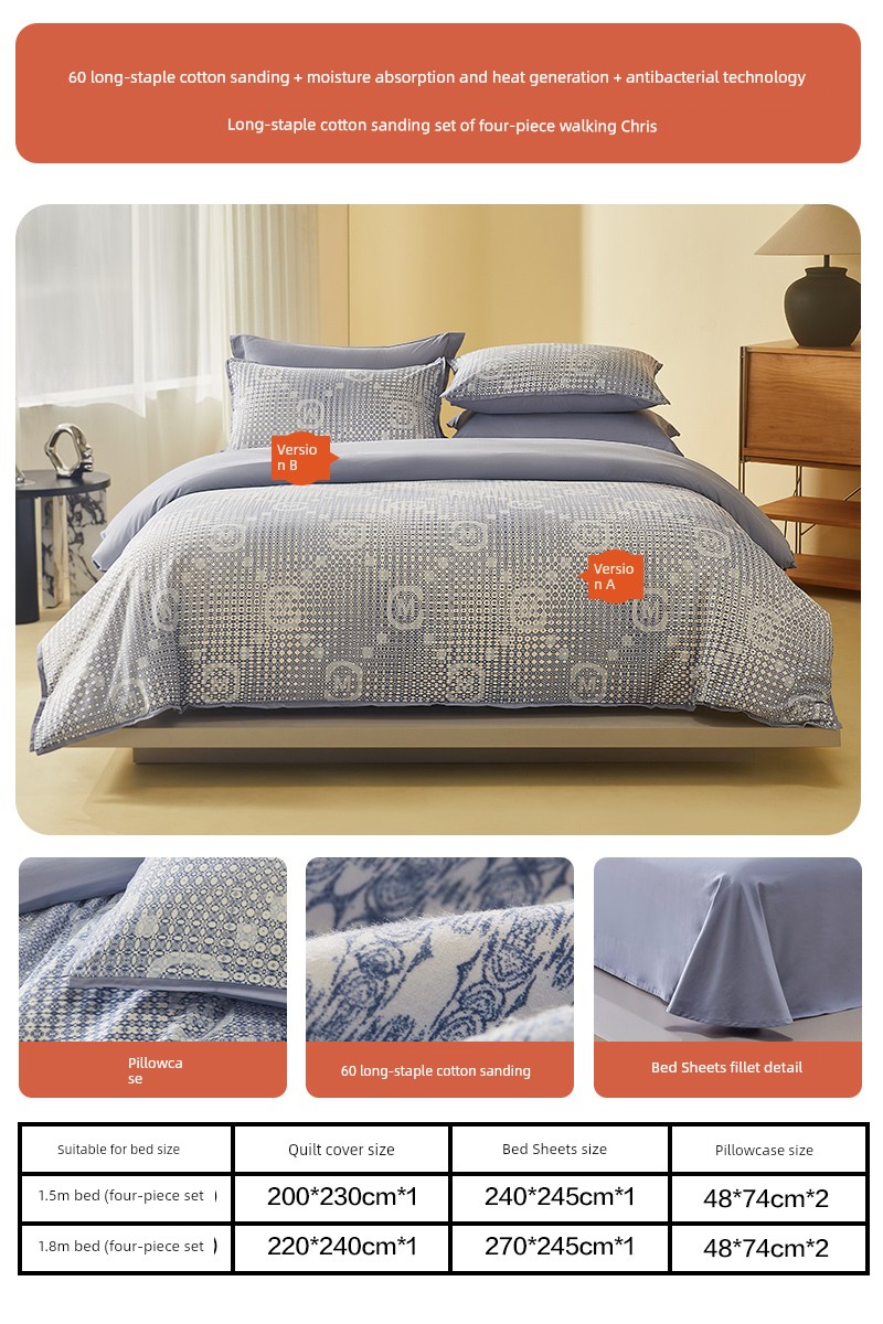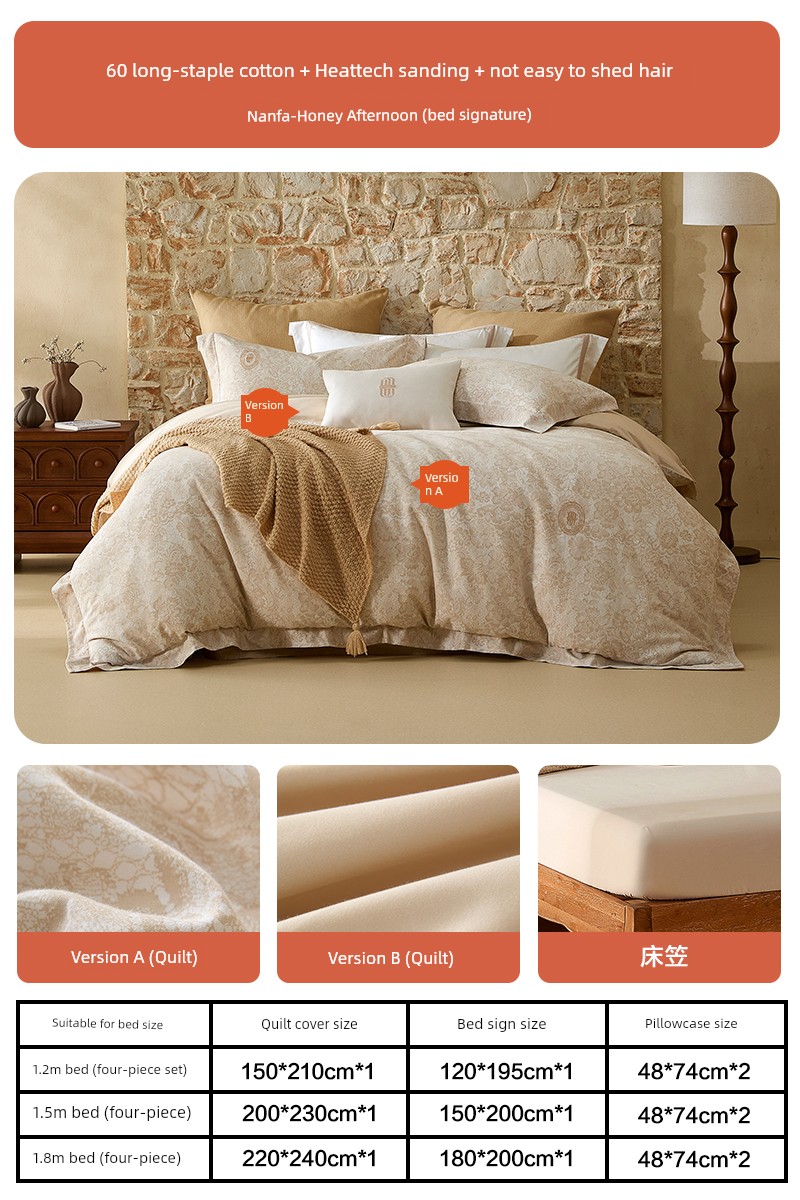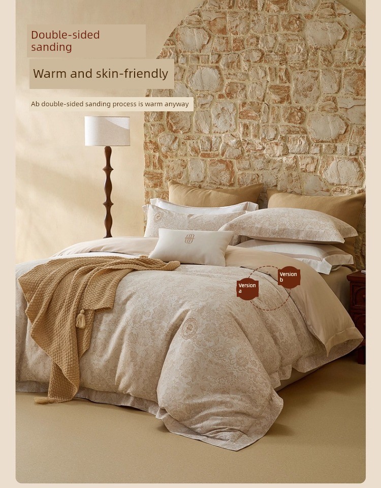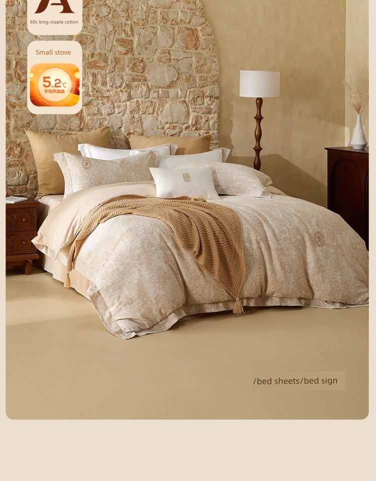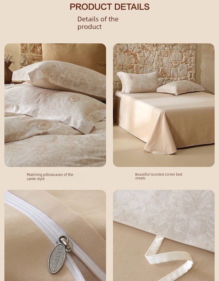 Mercury Home Textile 60S Long-Staple Cotton Accessible Luxury Brushed Four-Piece French All Cotton Thermal Set Print Quilt Cover Bed Sheets