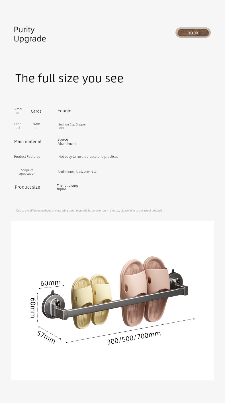 Youqin Slipper Rack Bathroom Punch-Free Water-Draining Suction Cup