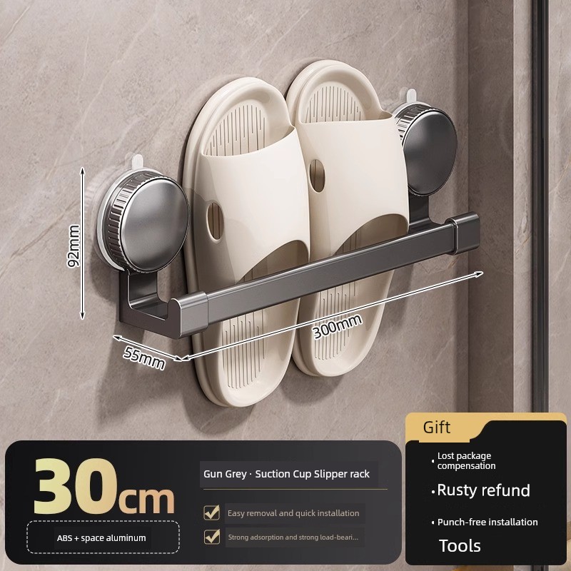枪灰30cm+50cm吸盘拖鞋架【三口之家】