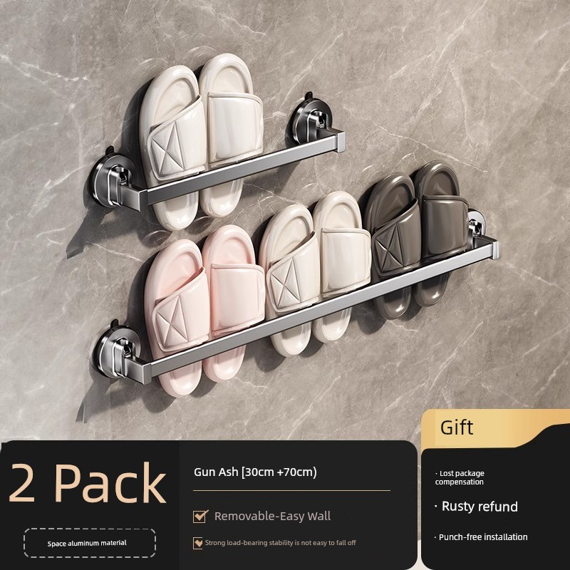 枪灰30cm+70cm吸盘拖鞋架【四口之家】