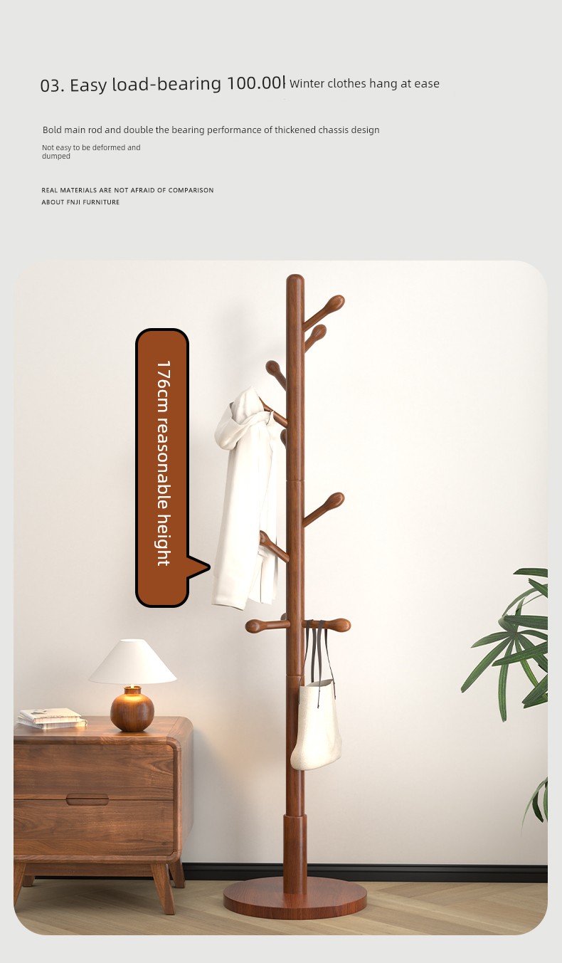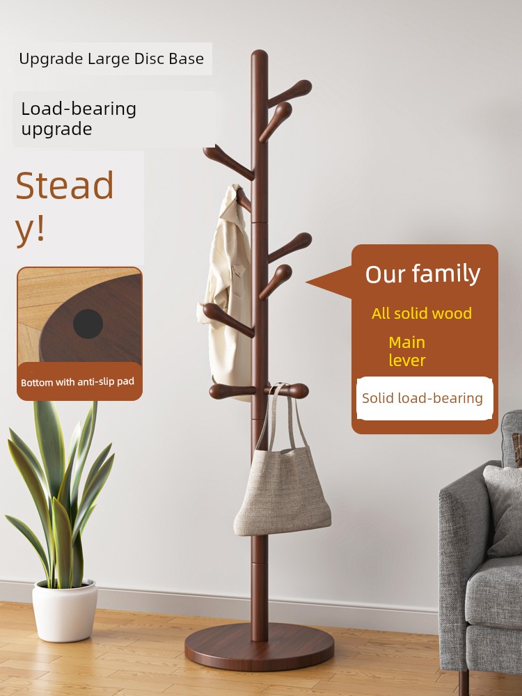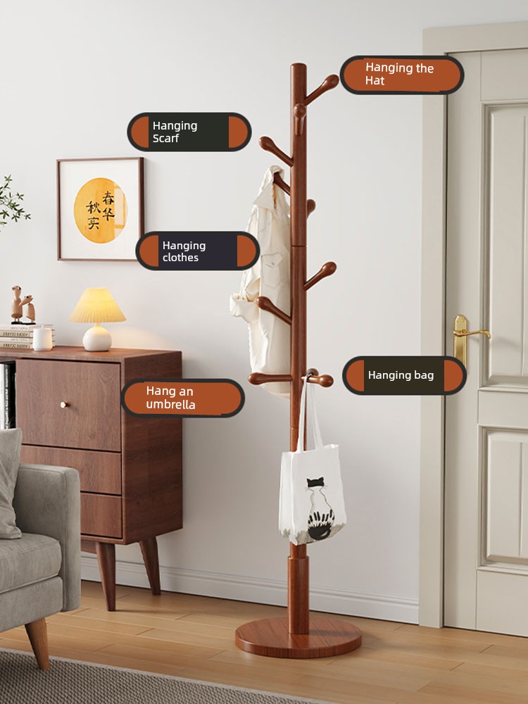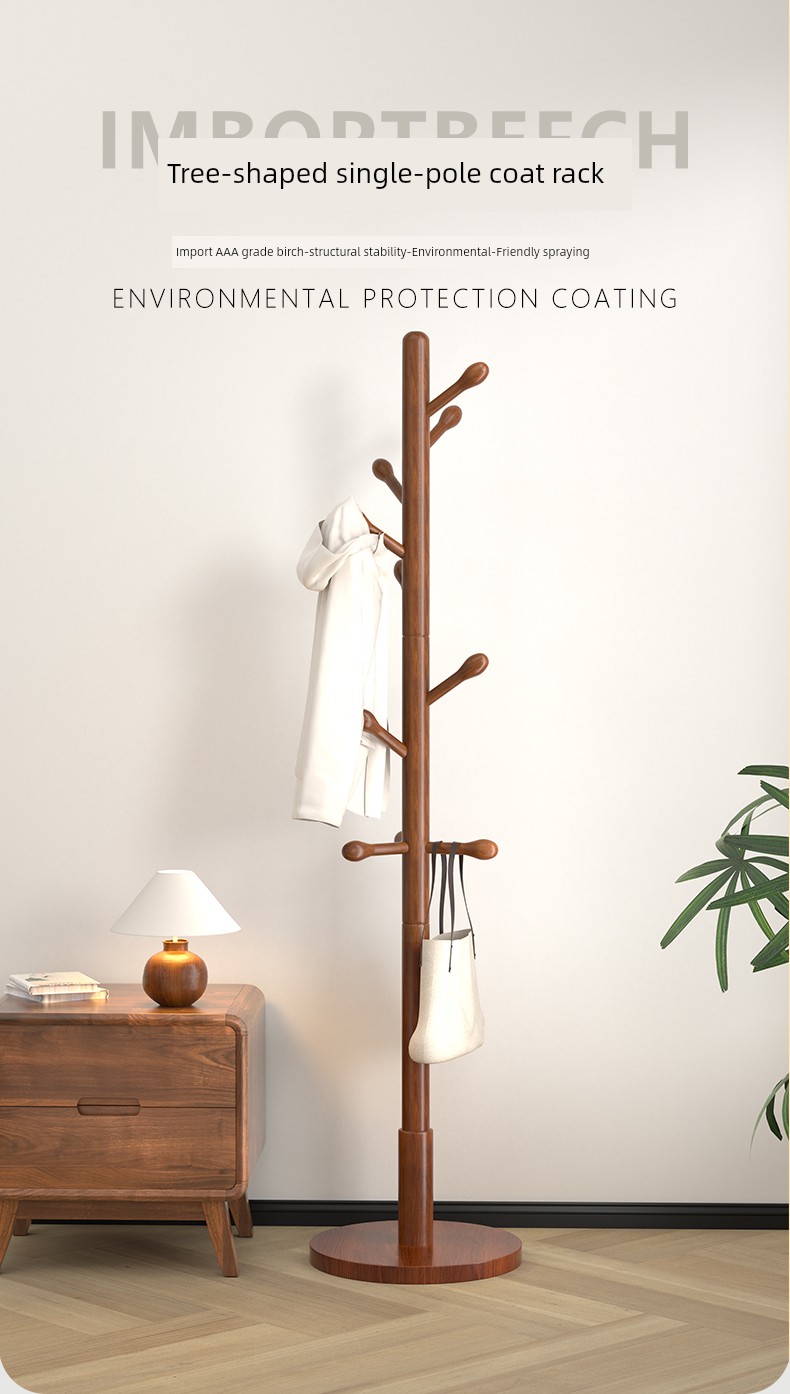 Clothes Rack, Floor-Standing Coat Rack, Bedroom Household Clothes Rack, Simple Vertical Beech Wood Rack for College Dormitory, Bag Rack