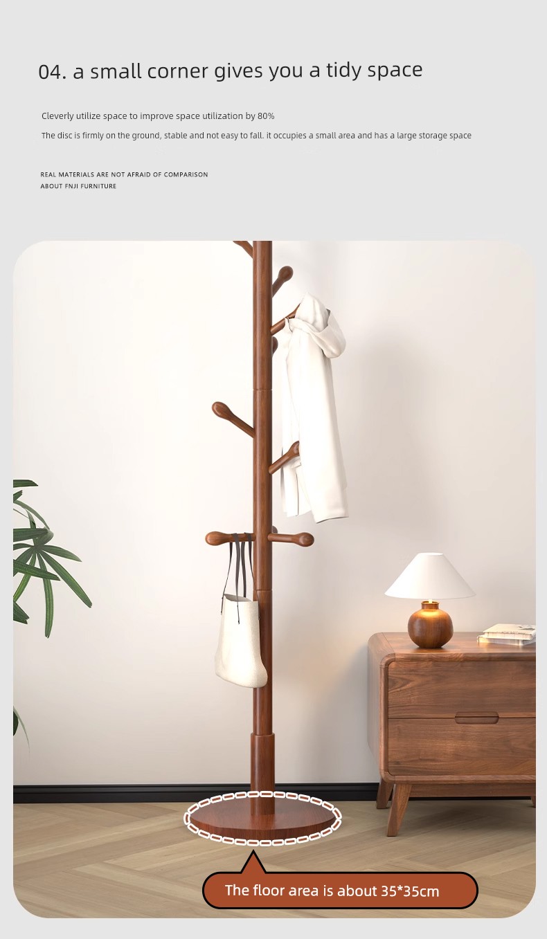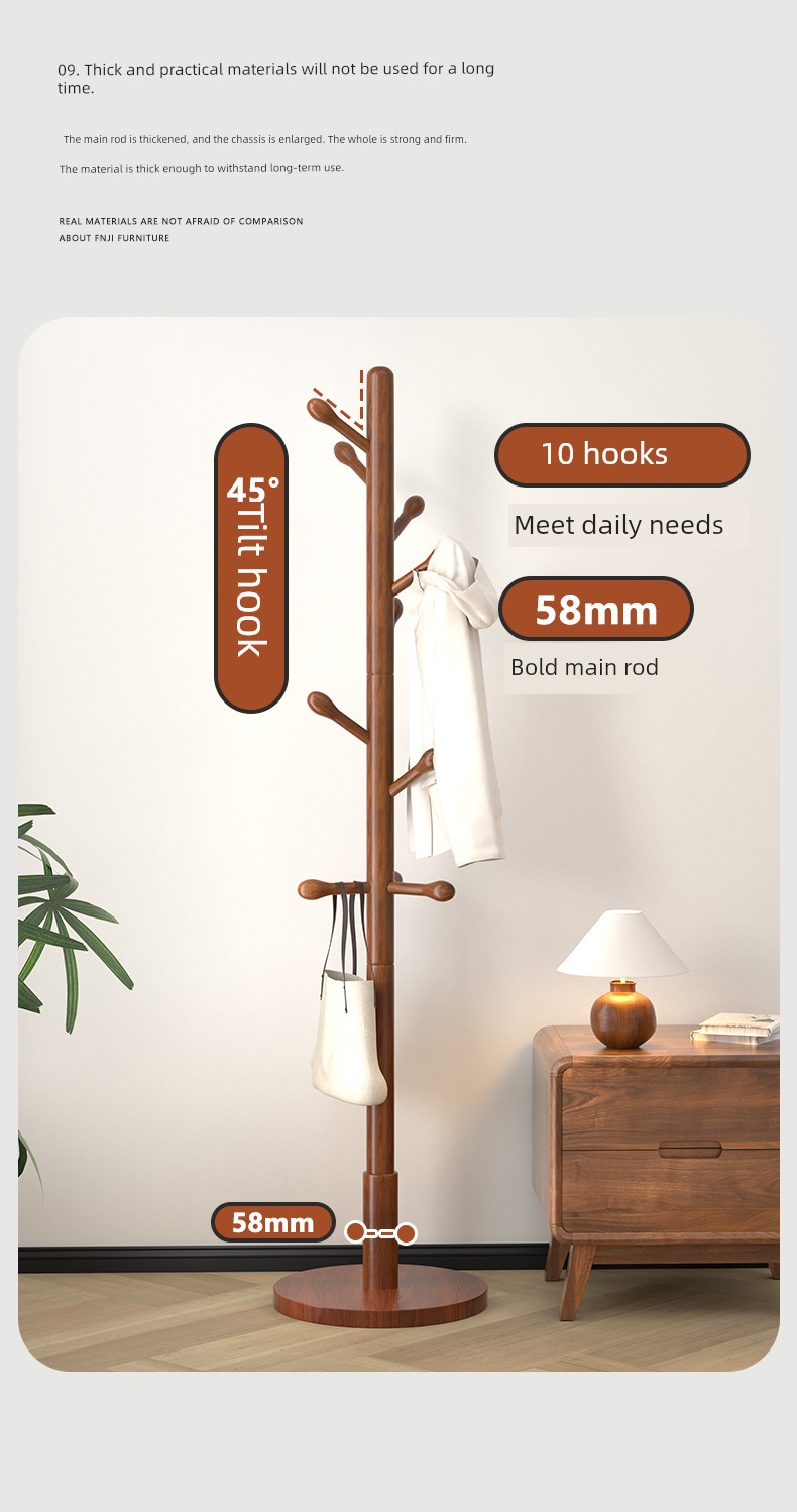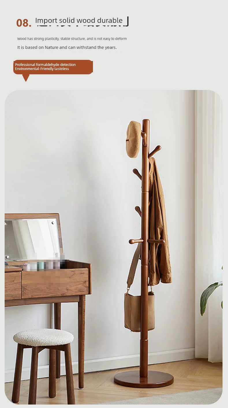 Clothes Rack, Floor-Standing Coat Rack, Bedroom Household Clothes Rack, Simple Vertical Beech Wood Rack for College Dormitory, Bag Rack