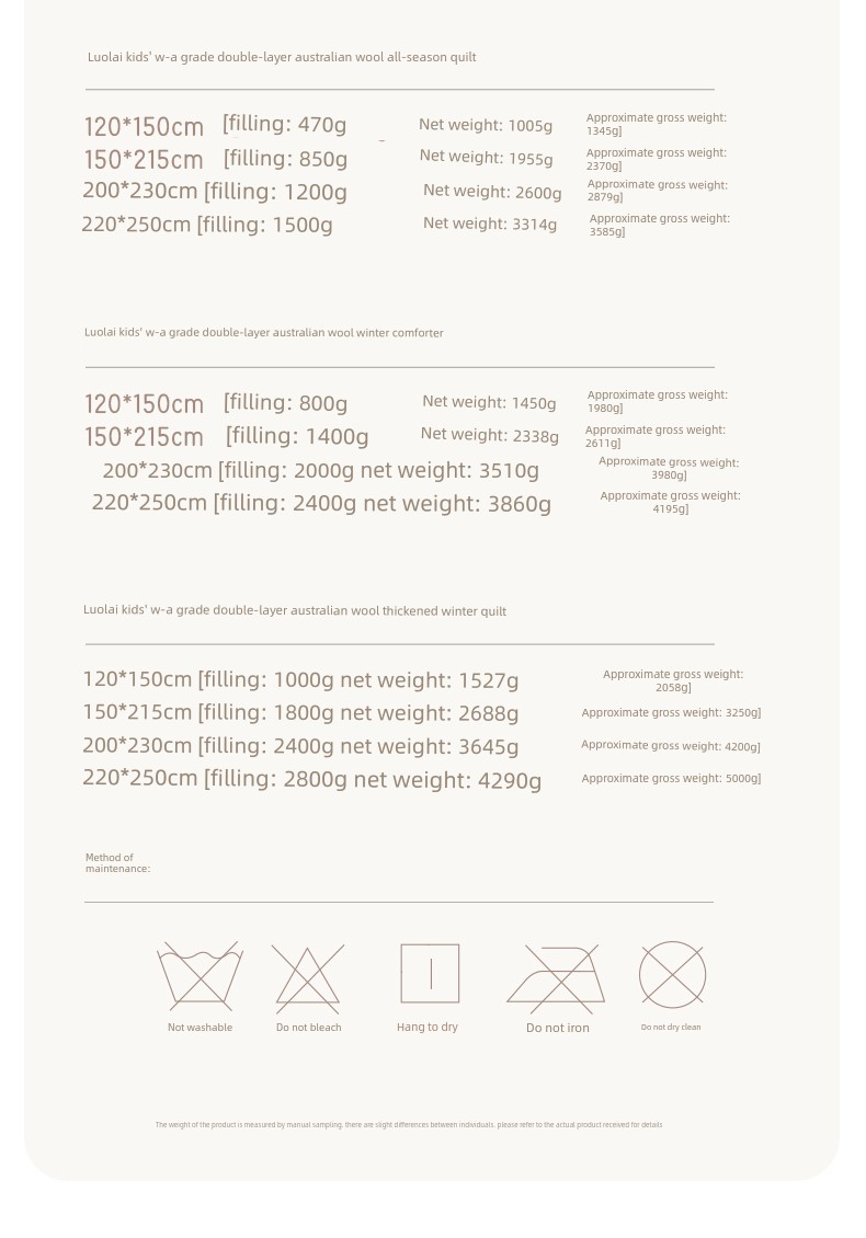 Winter Quilt [100% Double-Layer Australian Imported Wool + Infant & Toddler Class a + Physical Anti-Mite] - Soft & Fluffy
