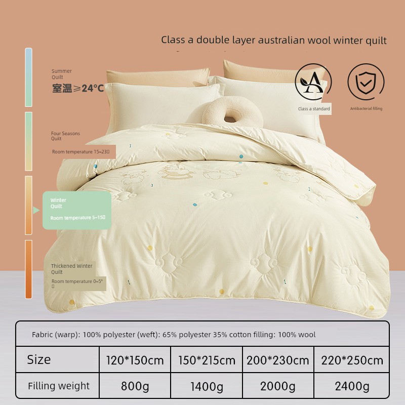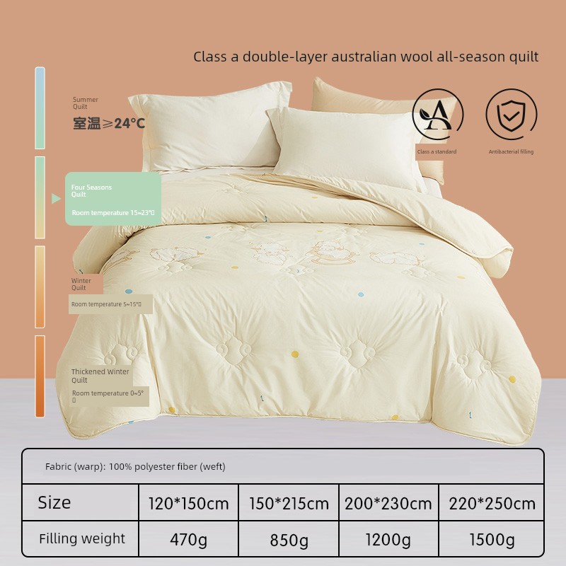 All-Season Quilt [100% Double-Layer Australian Imported Wool + Infant & Child Class a + Physical Anti-Mite] - Soft & Cuddly