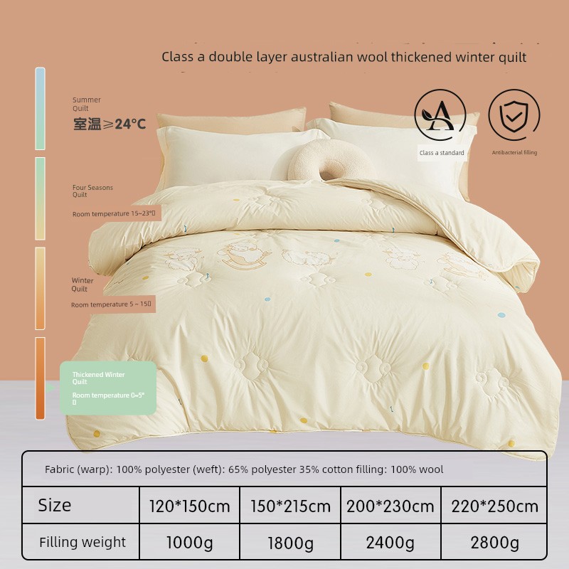 Thickened Winter Quilt [100% Double-Layer Australian Imported Wool + Infant Class a + Physical Anti-Mite] - Soft and Soft