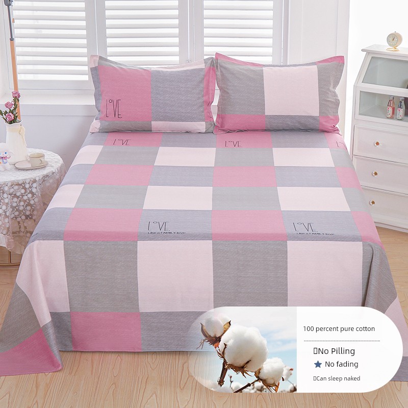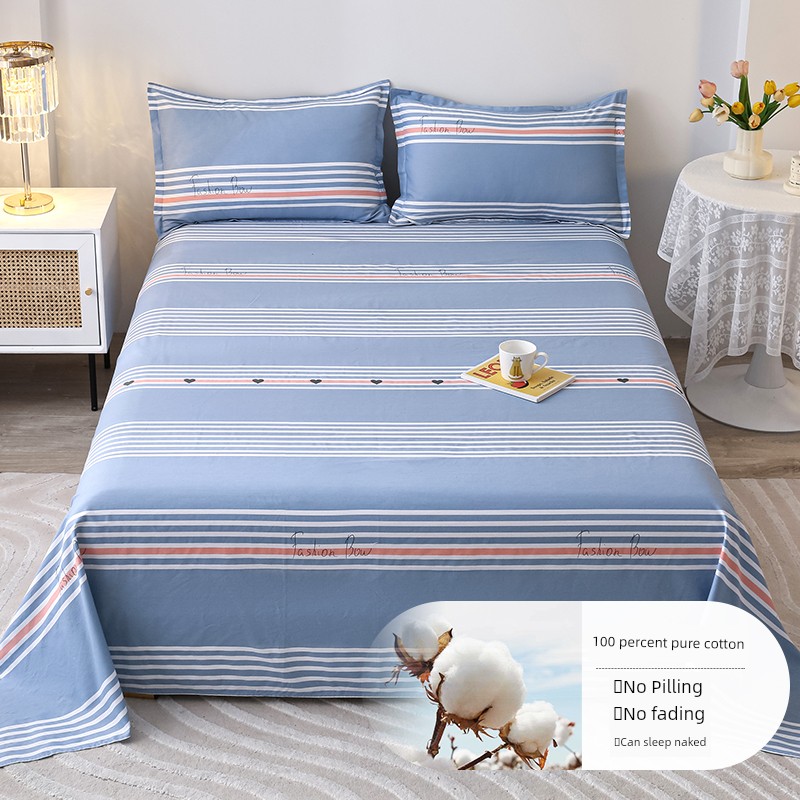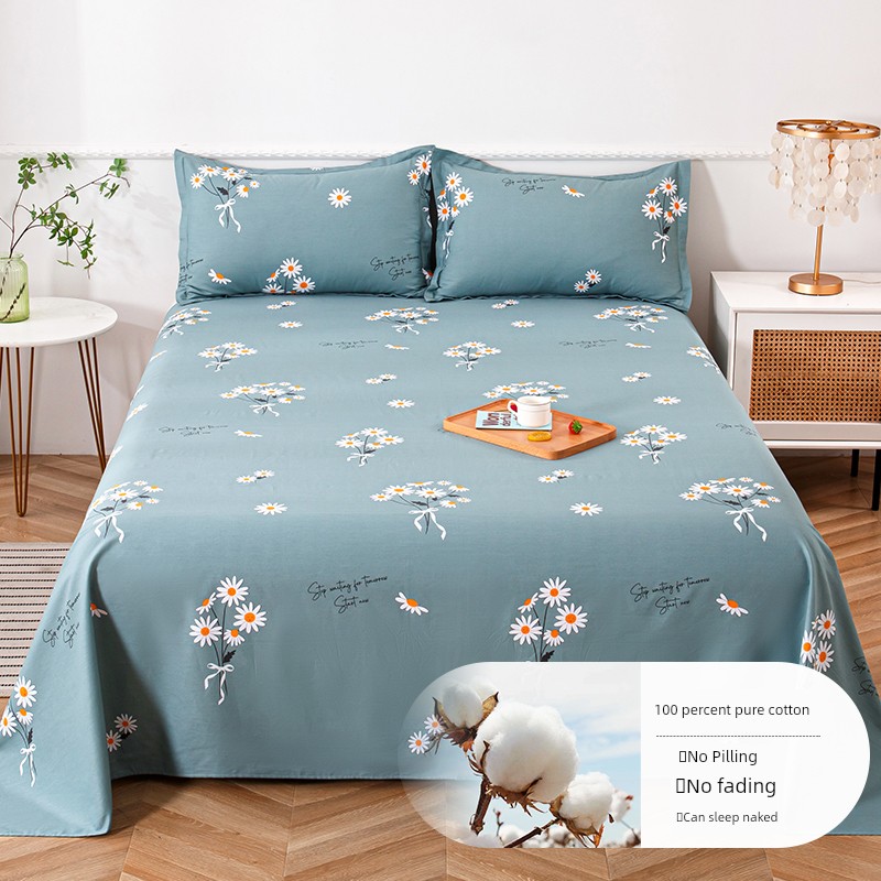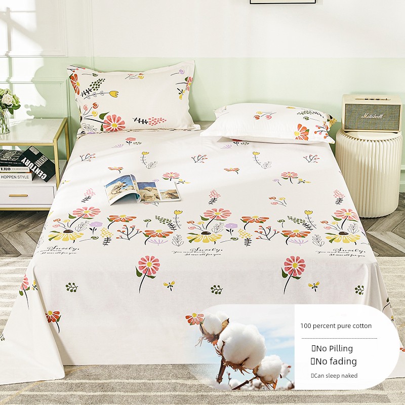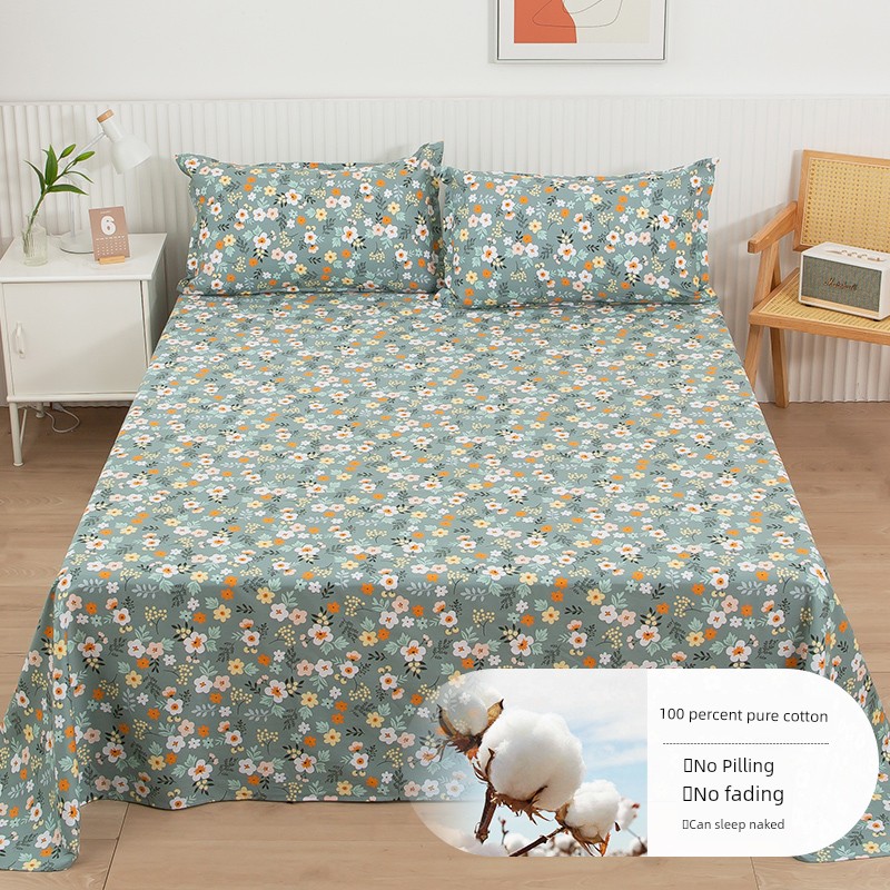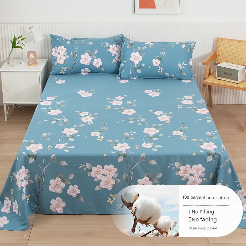 100% Pure Cotton Bed Sheet Single Piece Summer Student Dormitory Single Children's All-Cotton Double Bed Sheet Pillowcase Three-Piece Set 1.8