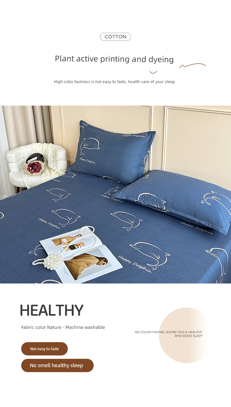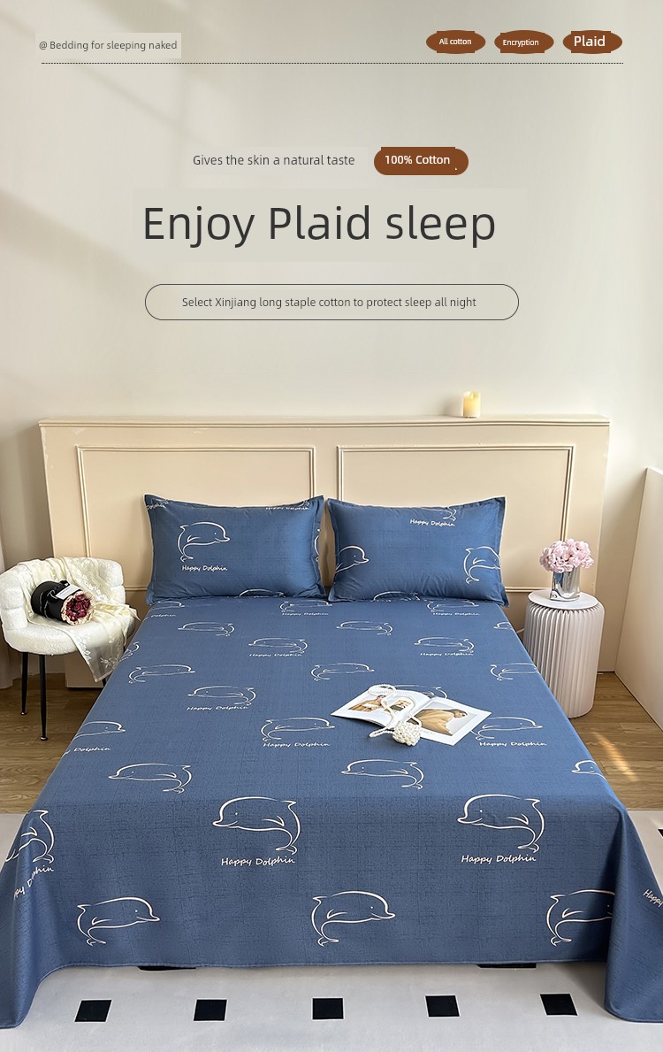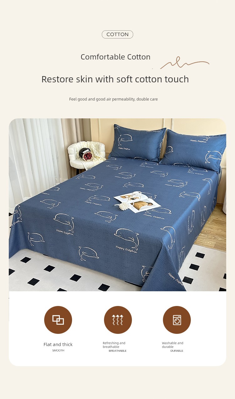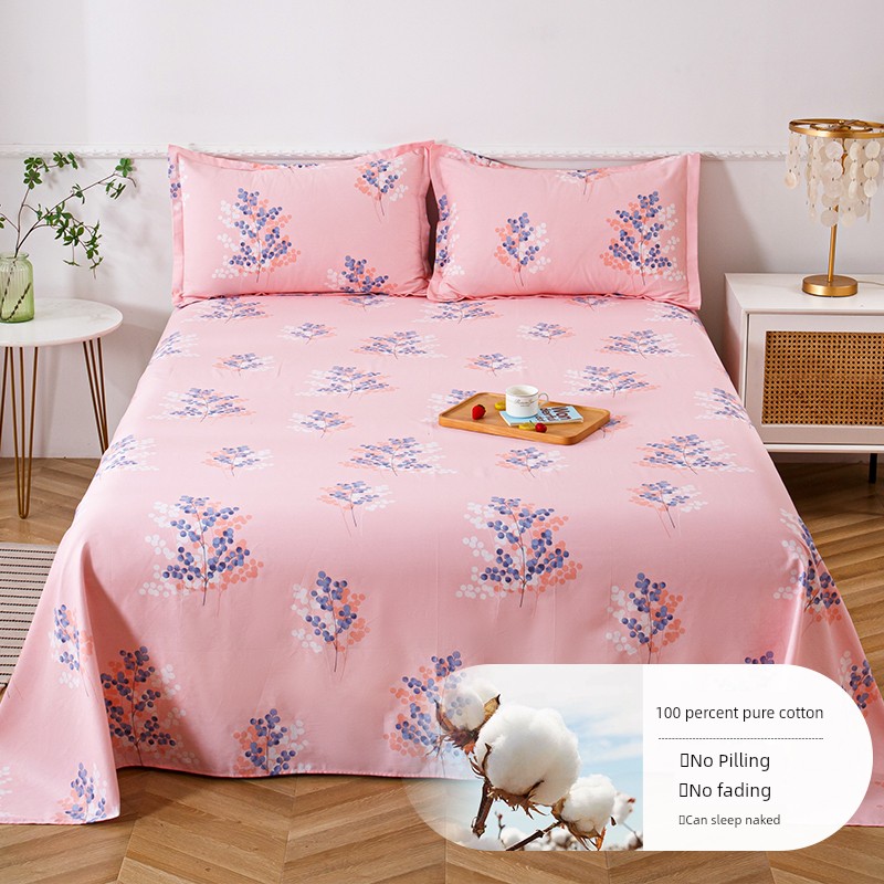 100% Pure Cotton Bed Sheet Single Piece Summer Student Dormitory Single Children's All-Cotton Double Bed Sheet Pillowcase Three-Piece Set 1.8