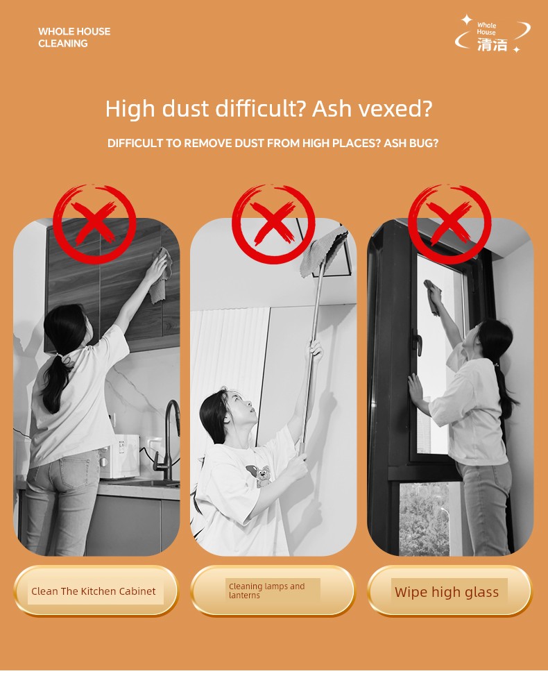 Upgraded 215cm Extension Pole [Erasable 4m High] 6 Cotton Heads in Total