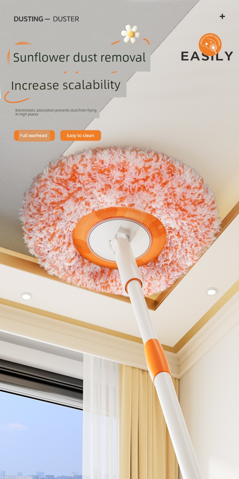 SUNFLOWER Retractable Mop Cleaning Ceiling Cleaning Gadget Wipe the Wall Dust Sweeping Mildew Removal Lengthening Bar Sunflower Duster