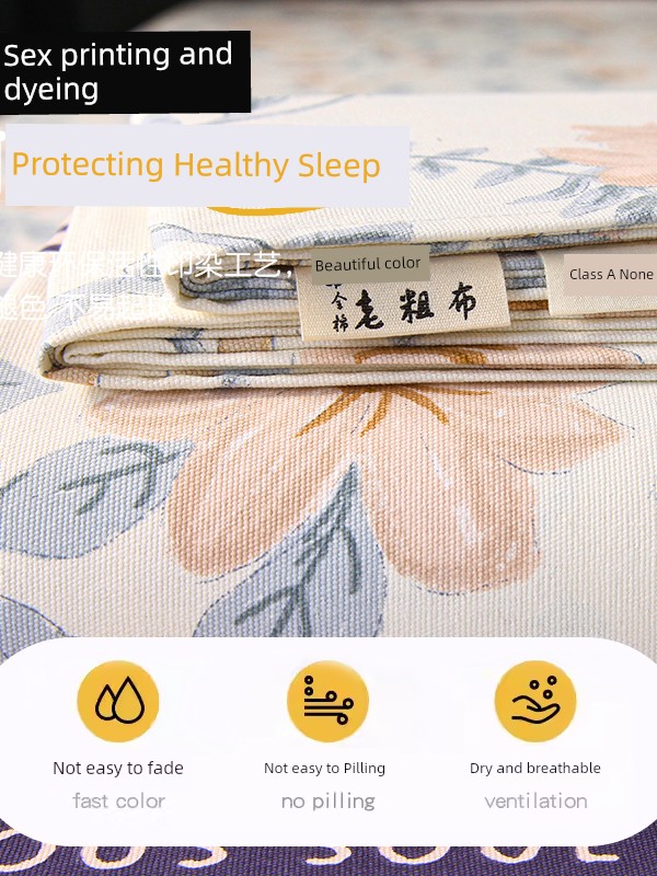 Muji Coarse Cotton Bed Sheet Single Piece Pure Cotton 100% Cotton Brushed Coarse Cloth Thickened Fitted Sheet Pillowcase Three-Piece Set