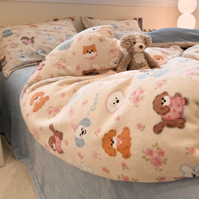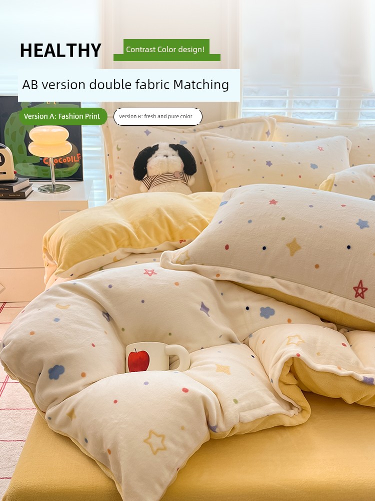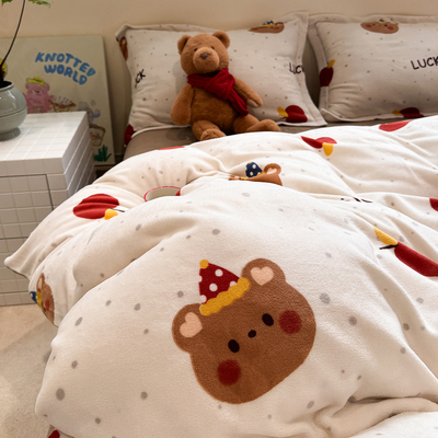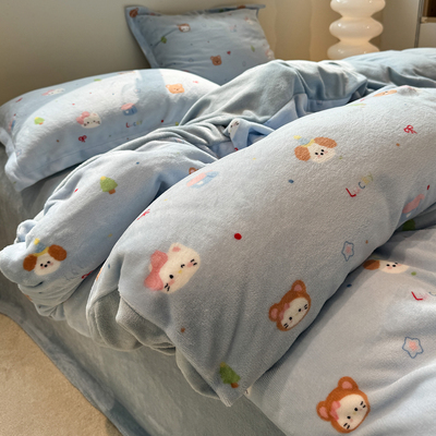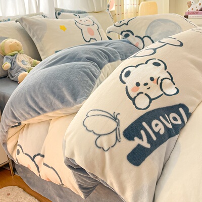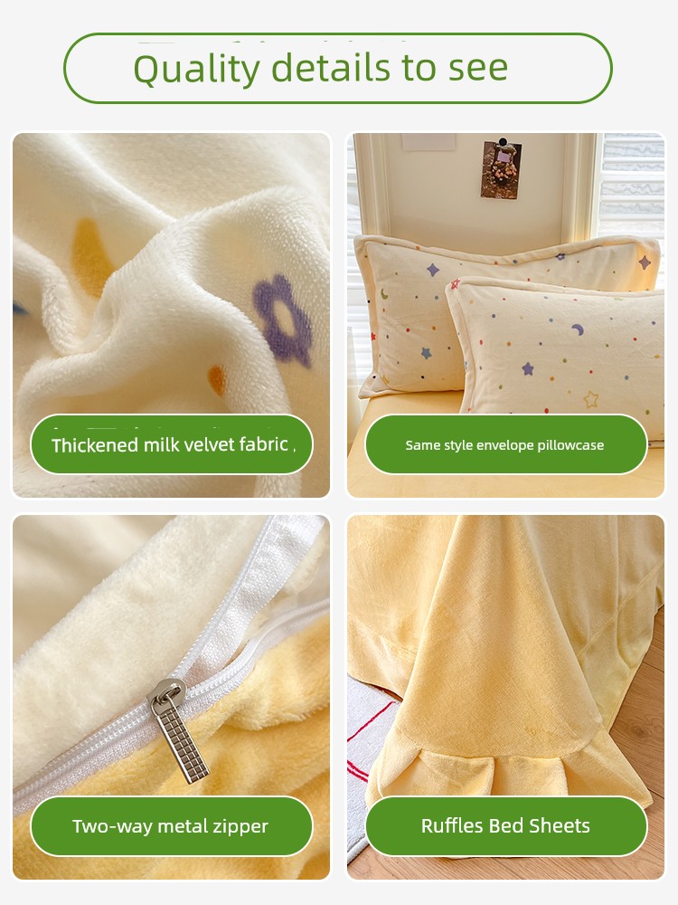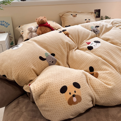 2025 New Arrival Thickened Milk Fiber Duvet Cover One-Piece Double-Sided Stuffed Quilt Single Flange Coral Fleece Single Fleece-lined Quilt Cover
