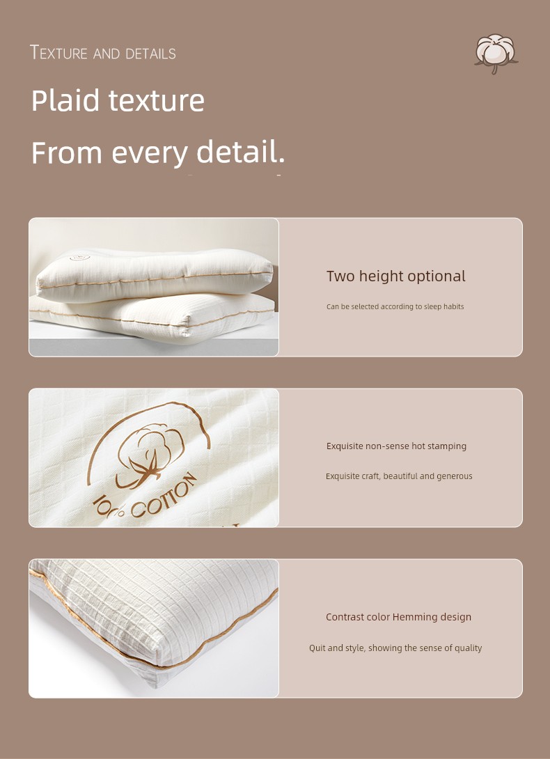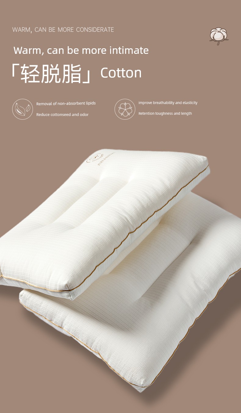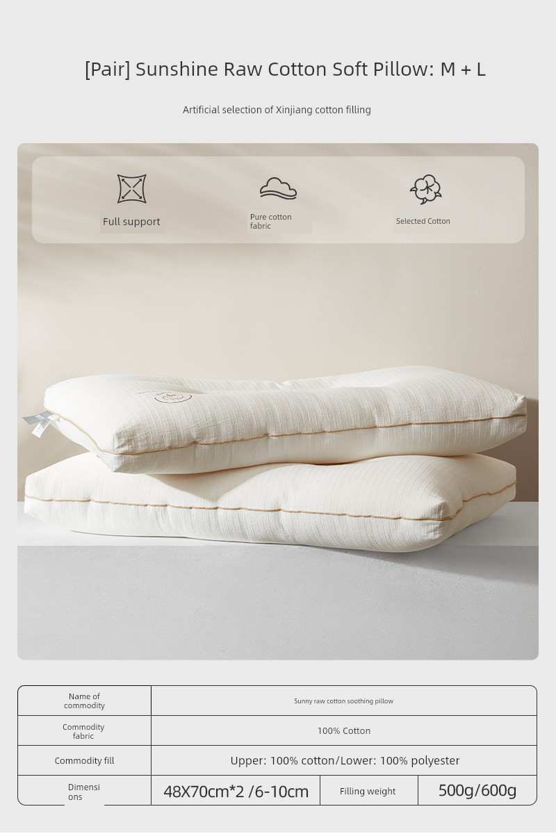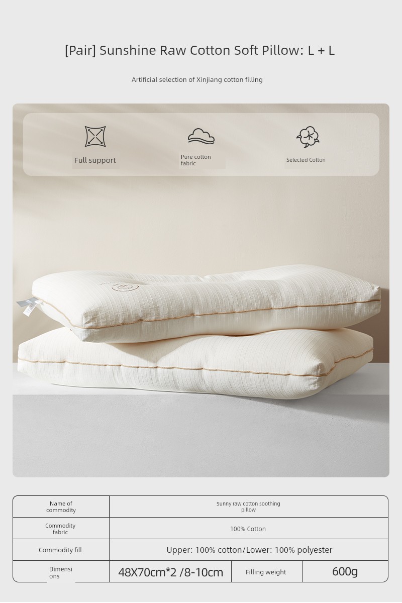 Pillow (6-10cm) [Xinjiang Cotton Filling + Pure Cotton Fabric + Soft and Stable Support] Sunshine Original Cotton Comfort Pillow