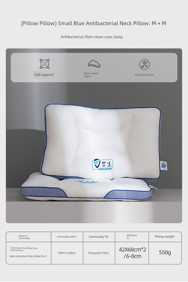 Pillow (6-8cm) [Pure Cotton Fabric + Antibacterial and Clean + Neck Support] Xinxiang Small Blue Strip Plus