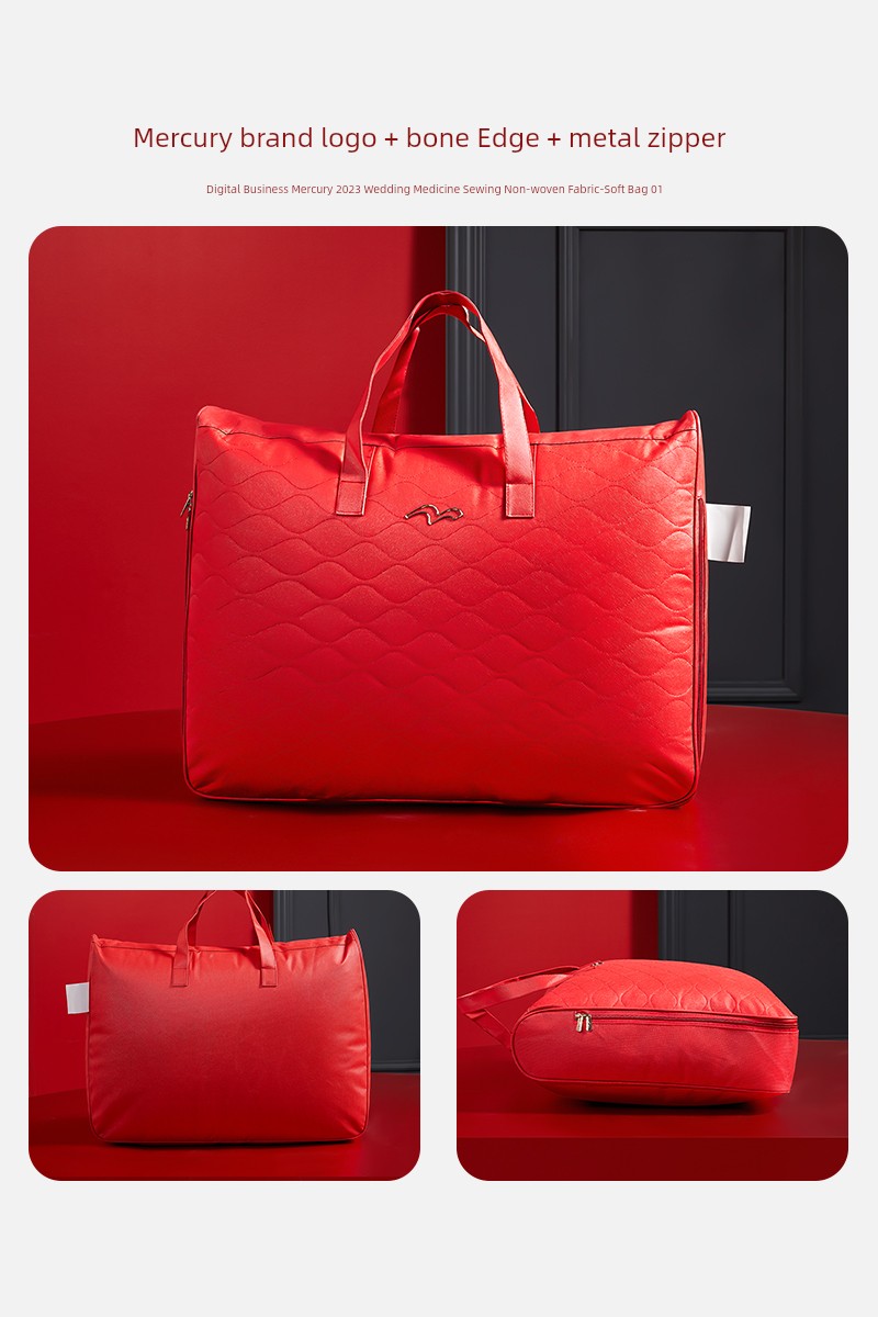 Mercury Home Textile Wedding, Marriage Quilt Buggy Bag Four-Piece Big Red Handbag Happy Quilt Packaging Gift Bag