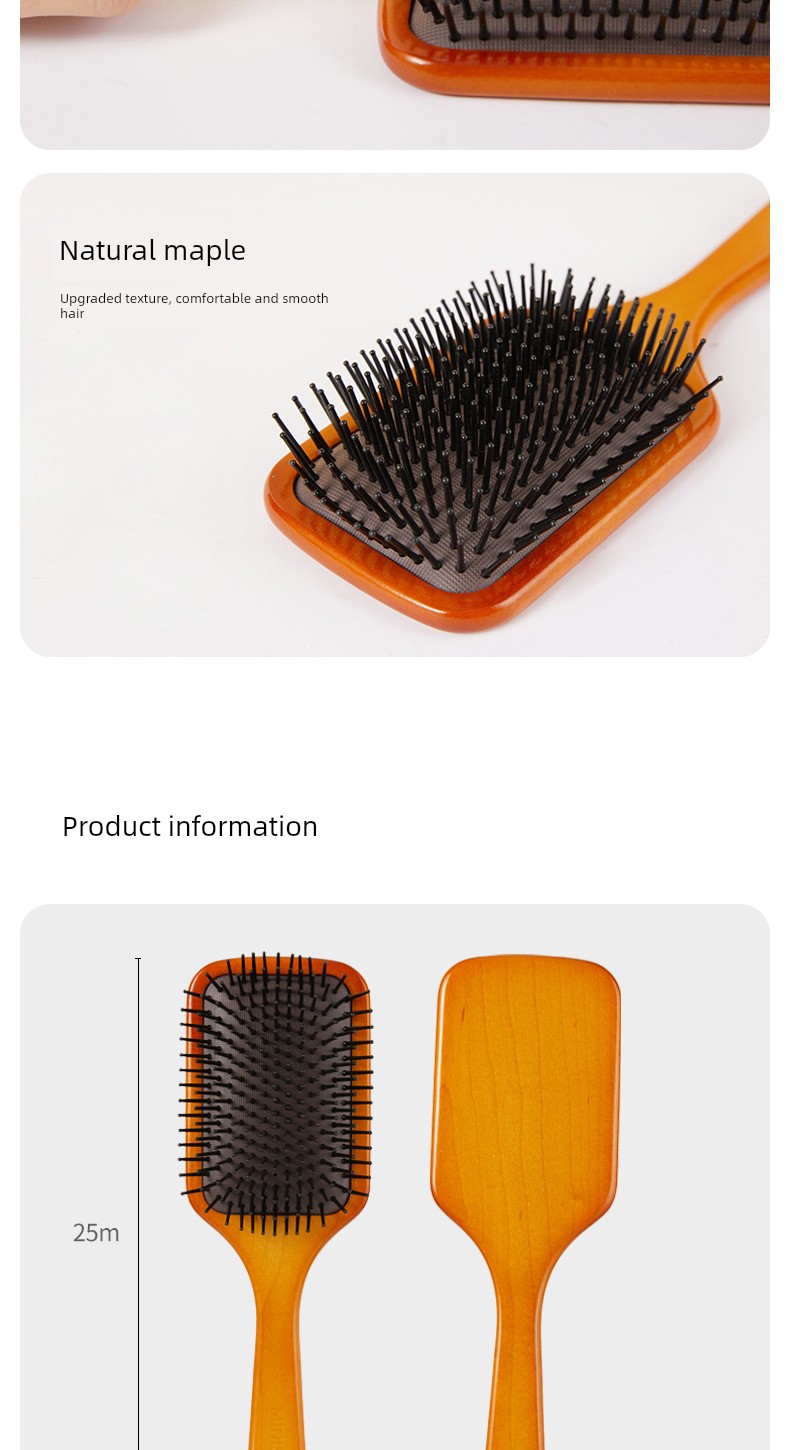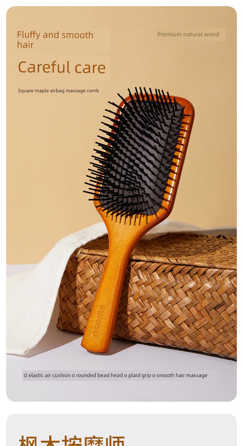 Large Natural Square Maple Airbag Massage Comb