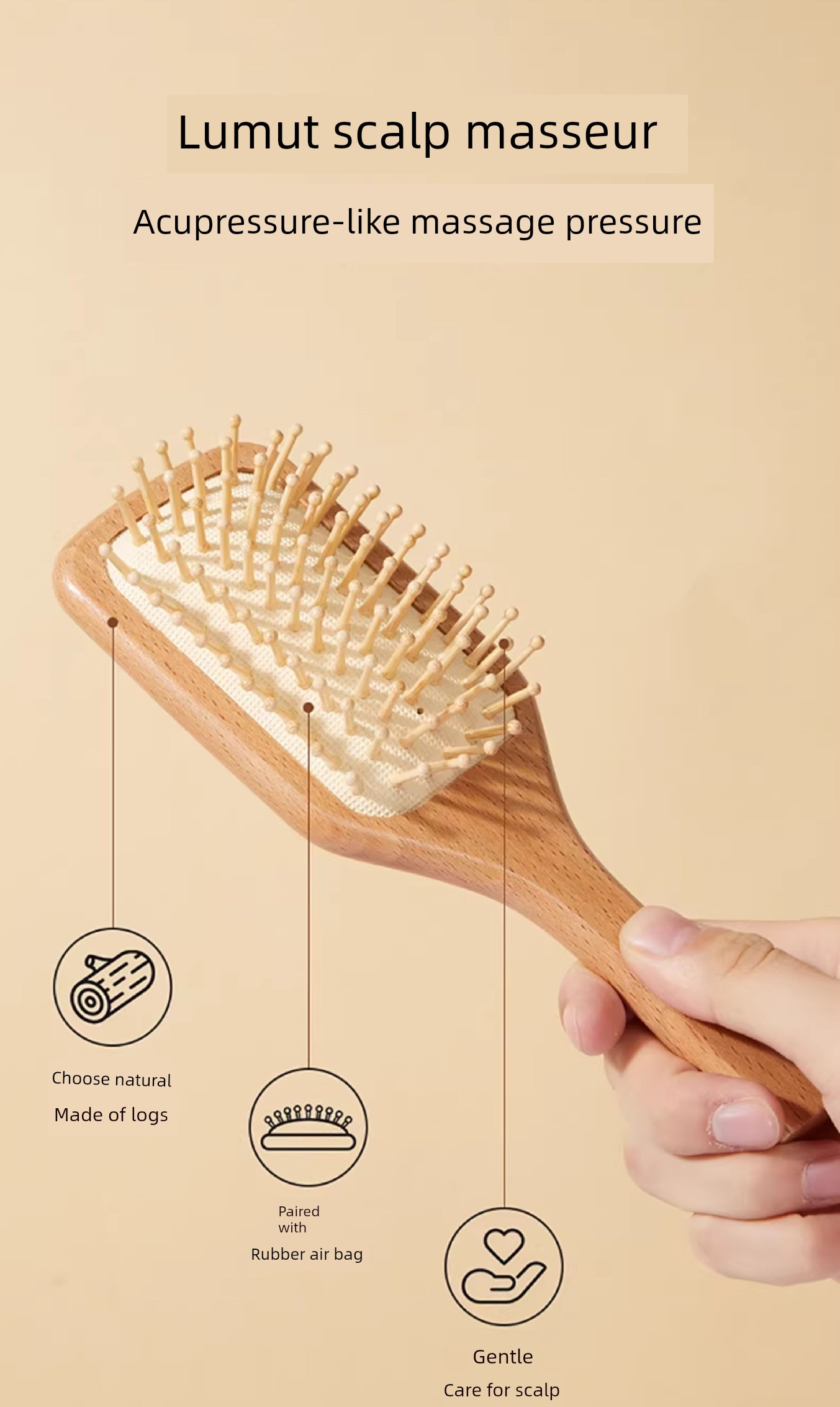 Natural Beech Airbag Massage Comb-Bamboo Needle