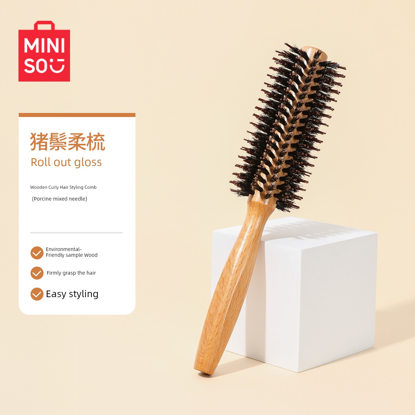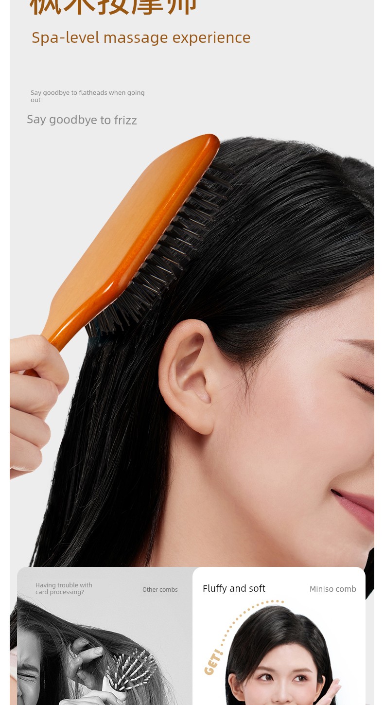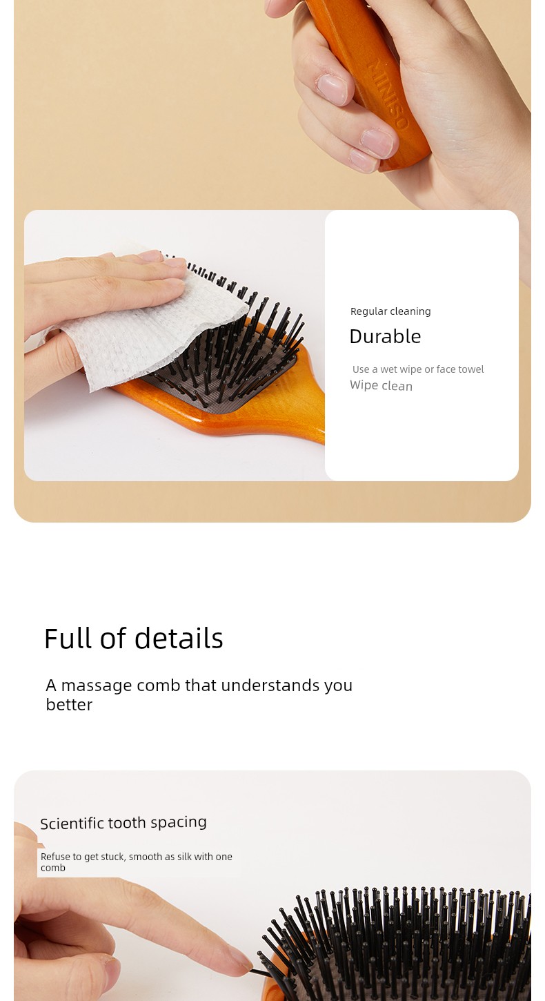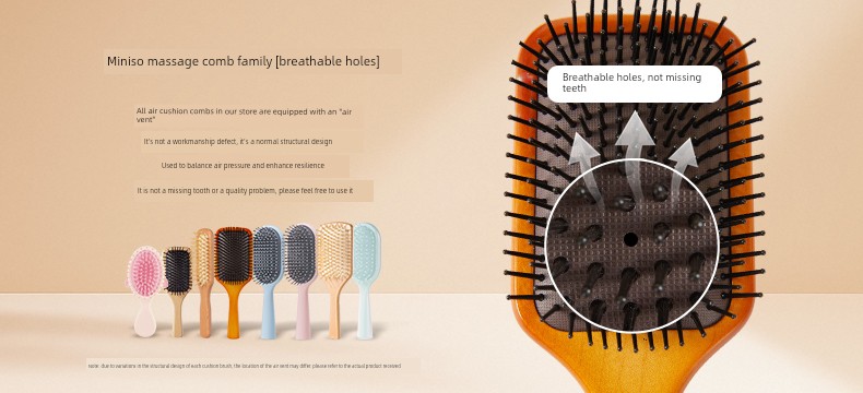 Miniso MINISO Comb Wooden Comb Air Cushion Comb Mini-Portable Small Portable Fluffy Airbag Comb Massage Comb Female