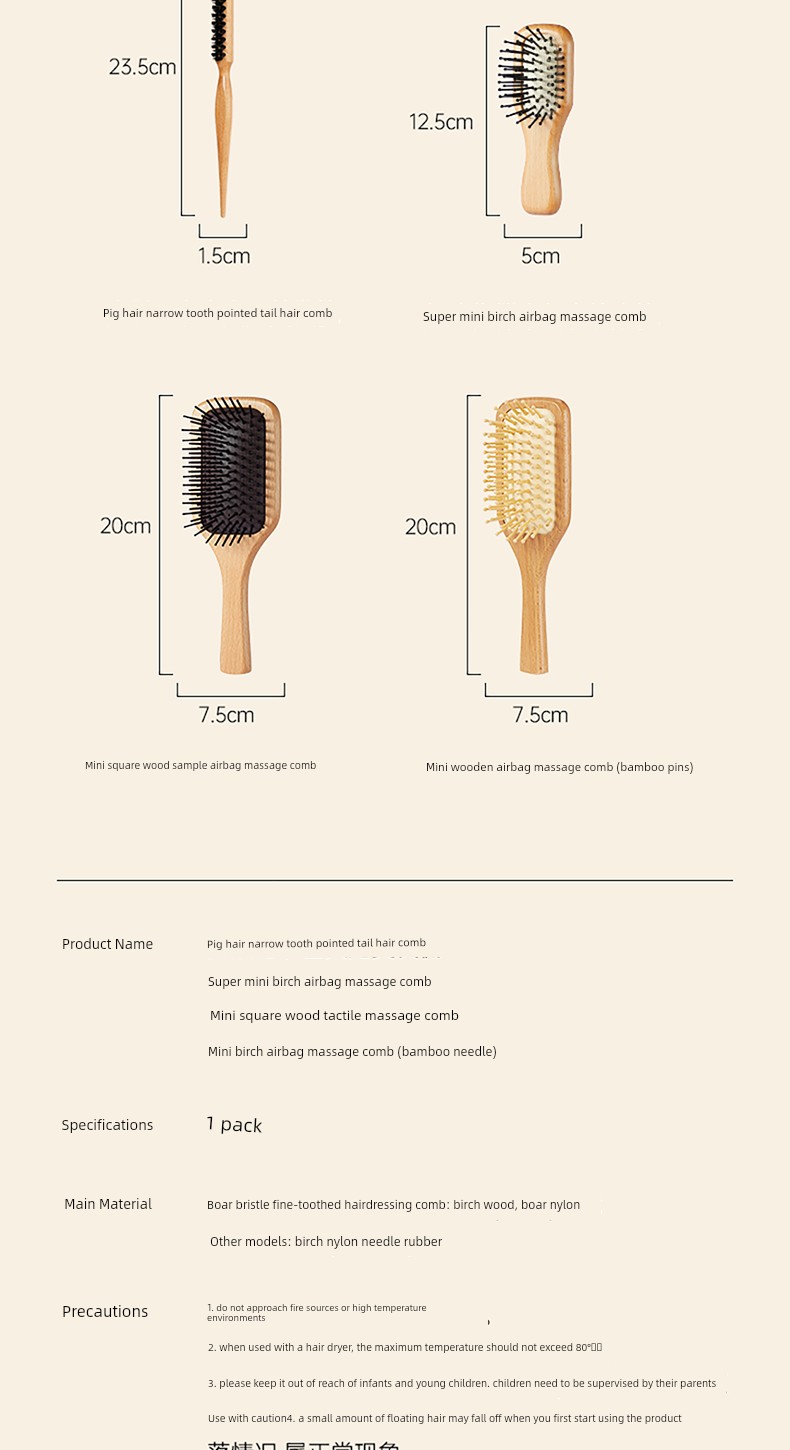 [Travel Combination] Boar Bristle Comb + Mini Beech Air Cushion Comb