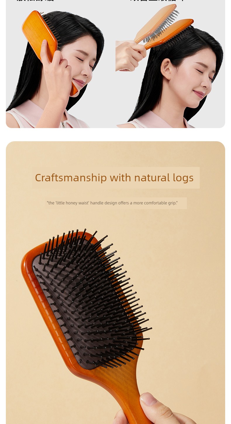 【Buy One Get One Free】Beechwood Air Cushion Comb (Bamboo Pin) + Mini Beechwood Air Cushion Comb