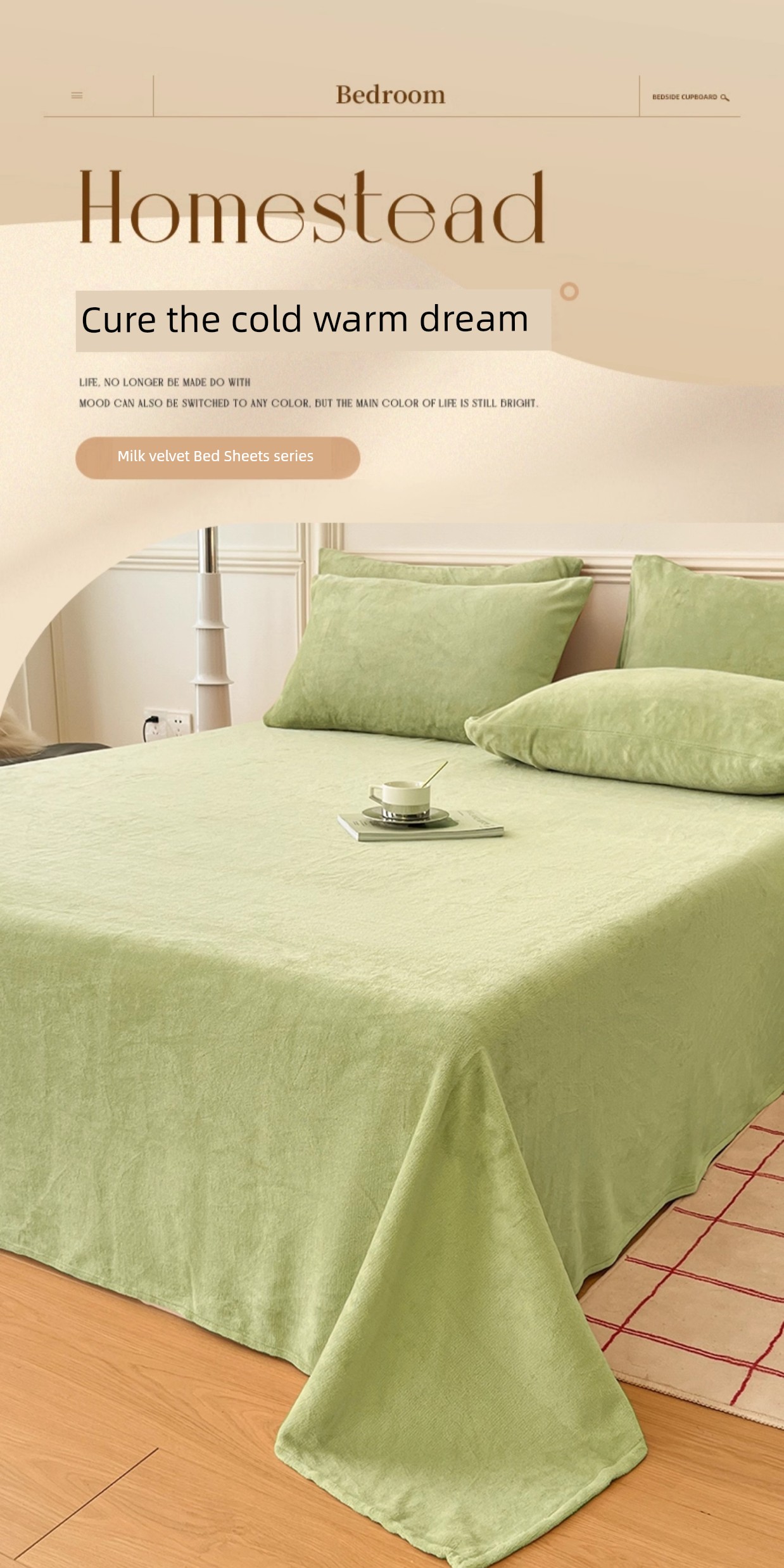 Class A Thickened Milk Fiber Bed Sheet One-Piece Winter Flange Coral Fleece Surface Quilt Single Dormitory Blanket Fleece-lined Fitted Sheet