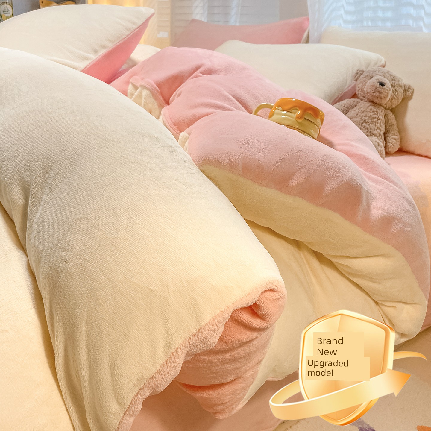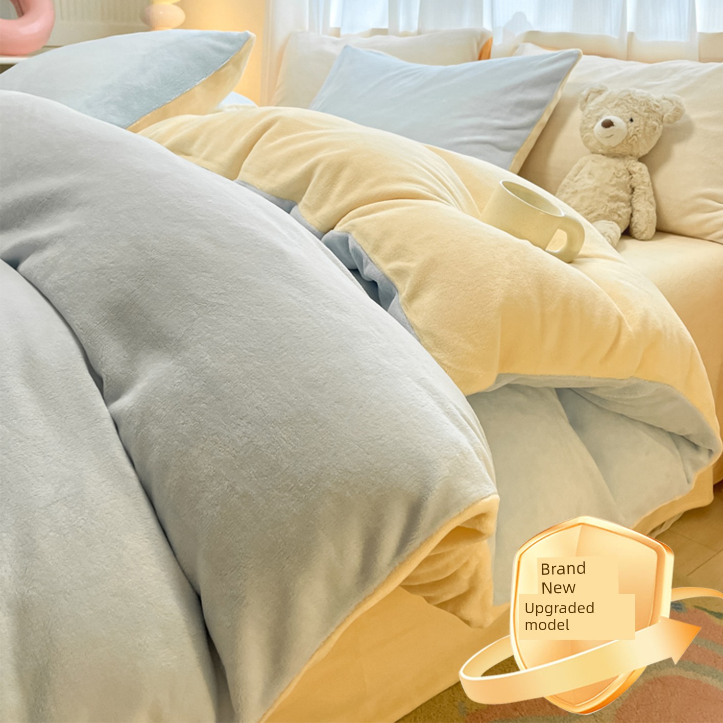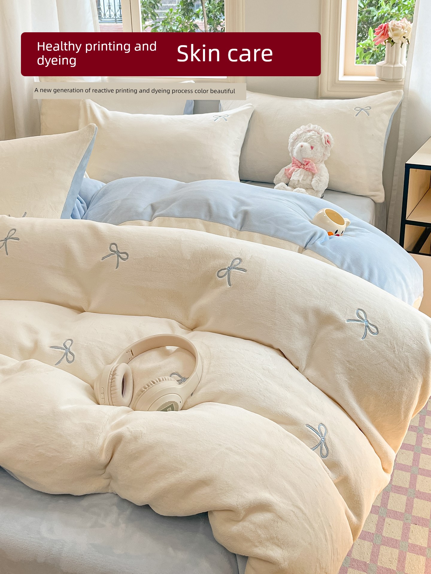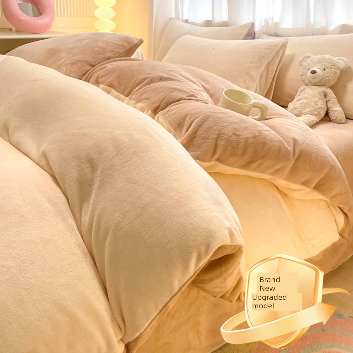 Milk Fiber Bed Four-Piece Set Flange Coral Fleece Duvet Cover 2025 New Arrival Fall and Winter Bed Sheets Thickened Fleece-lined Three-Piece Set