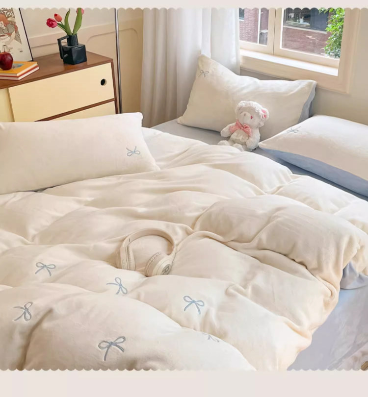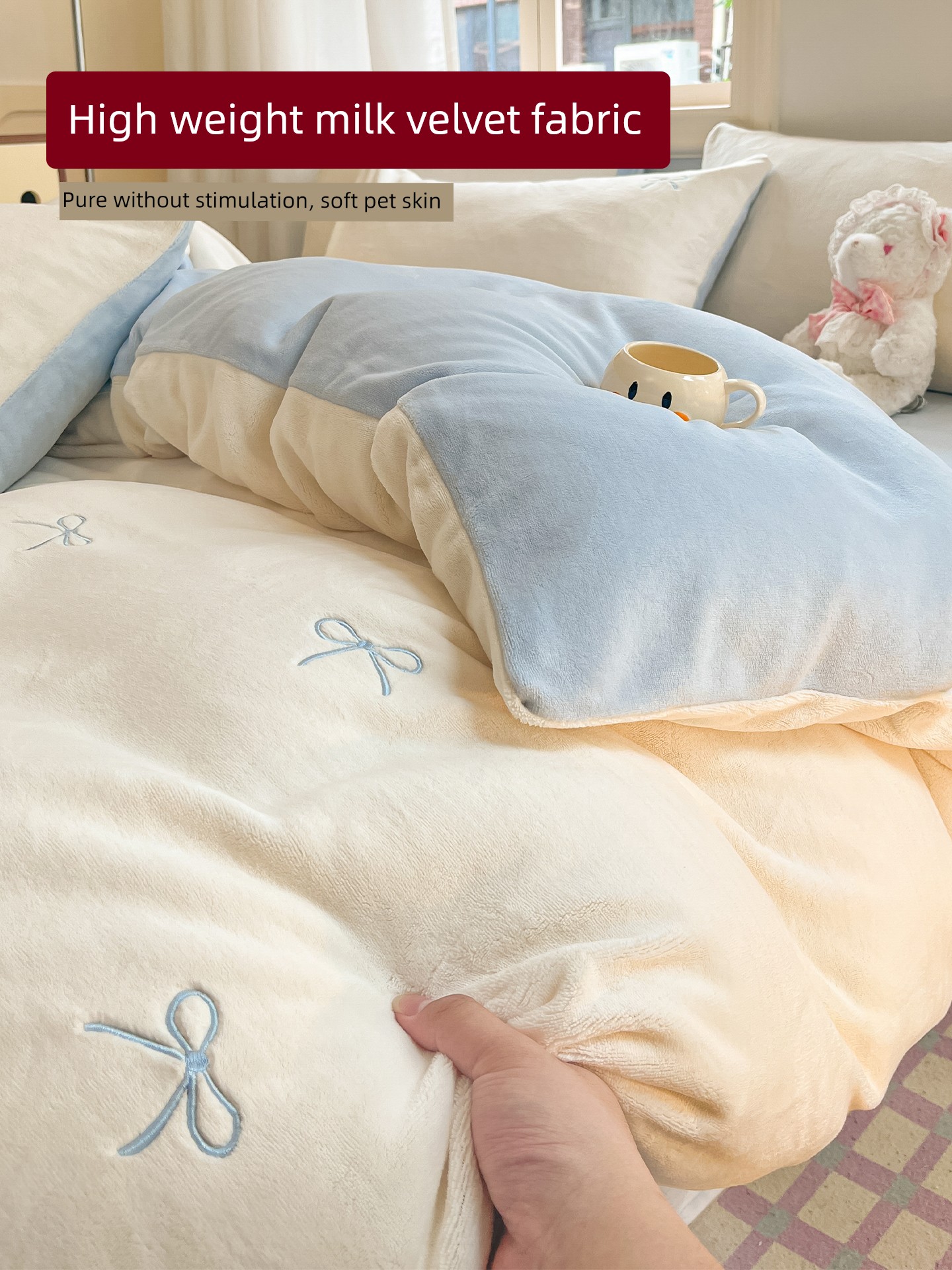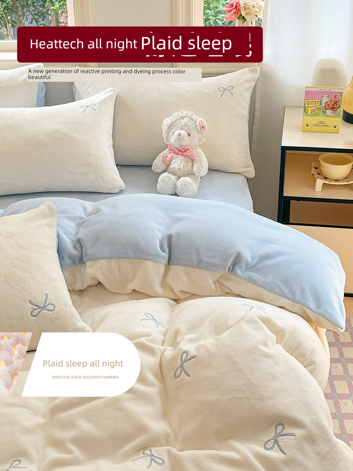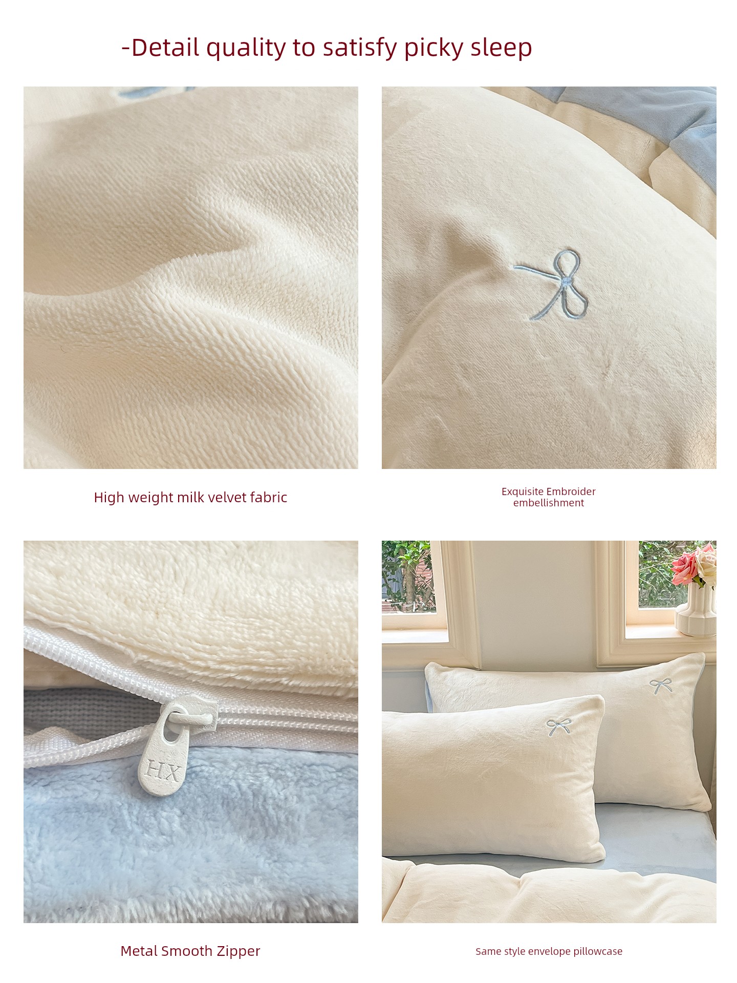 Milk Fiber Bed Four-Piece Set Flange Coral Fleece Duvet Cover 2025 New Arrival Fall and Winter Bed Sheets Thickened Fleece-lined Three-Piece Set