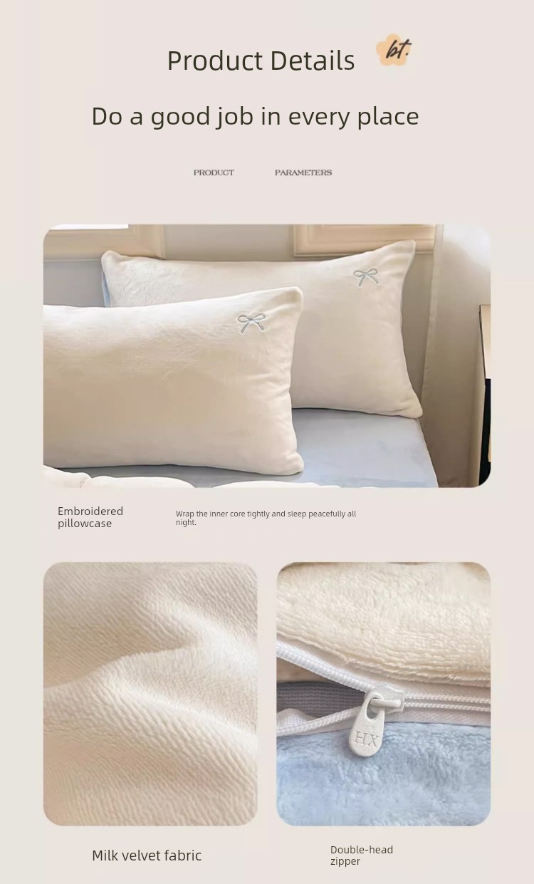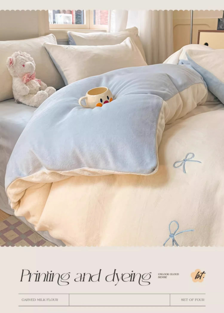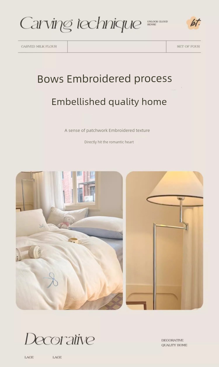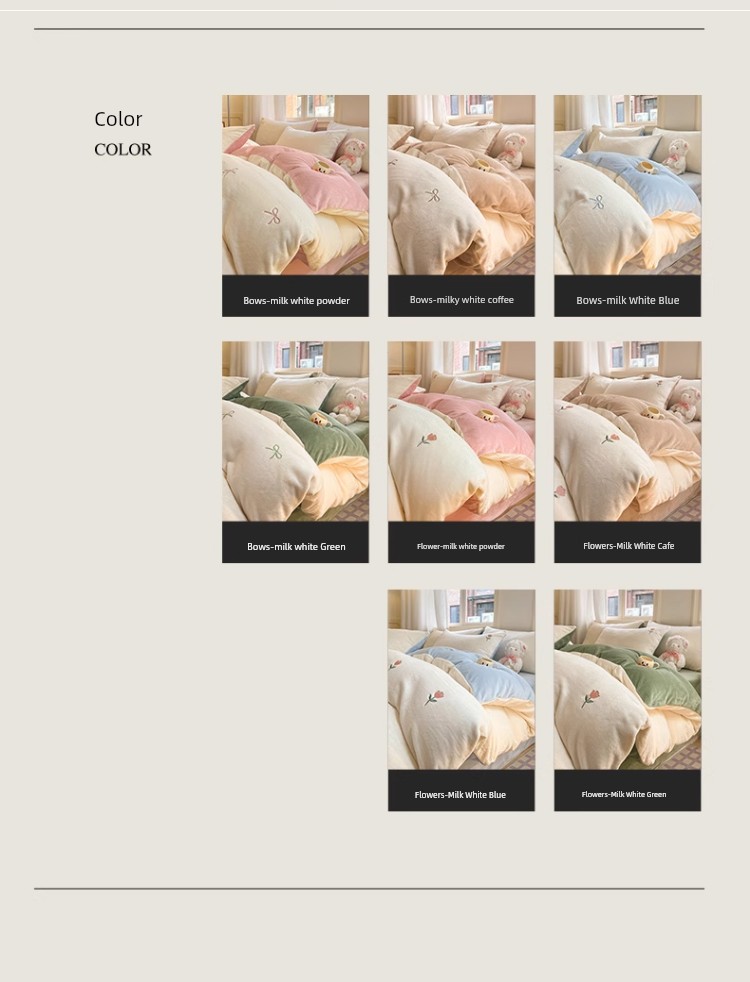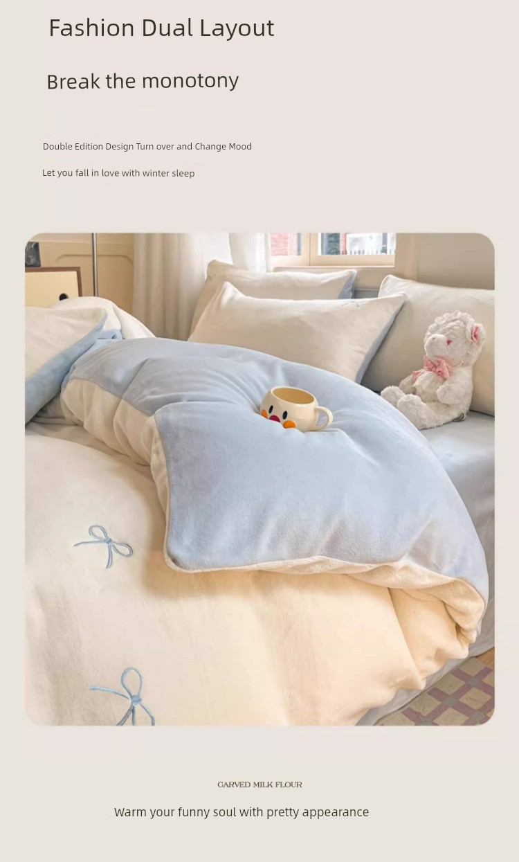 Milk Fiber Bed Four-Piece Set Flange Coral Fleece Duvet Cover 2025 New Arrival Fall and Winter Bed Sheets Thickened Fleece-lined Three-Piece Set