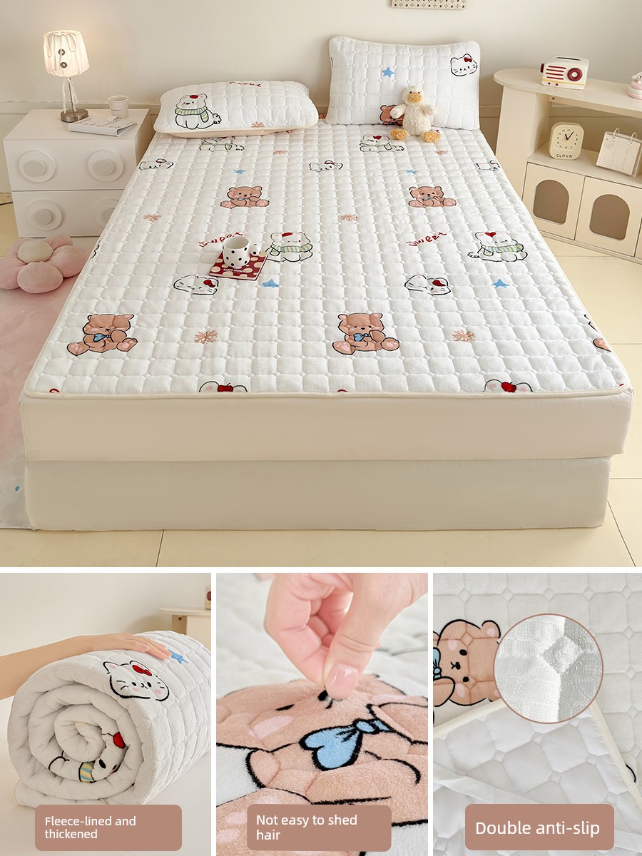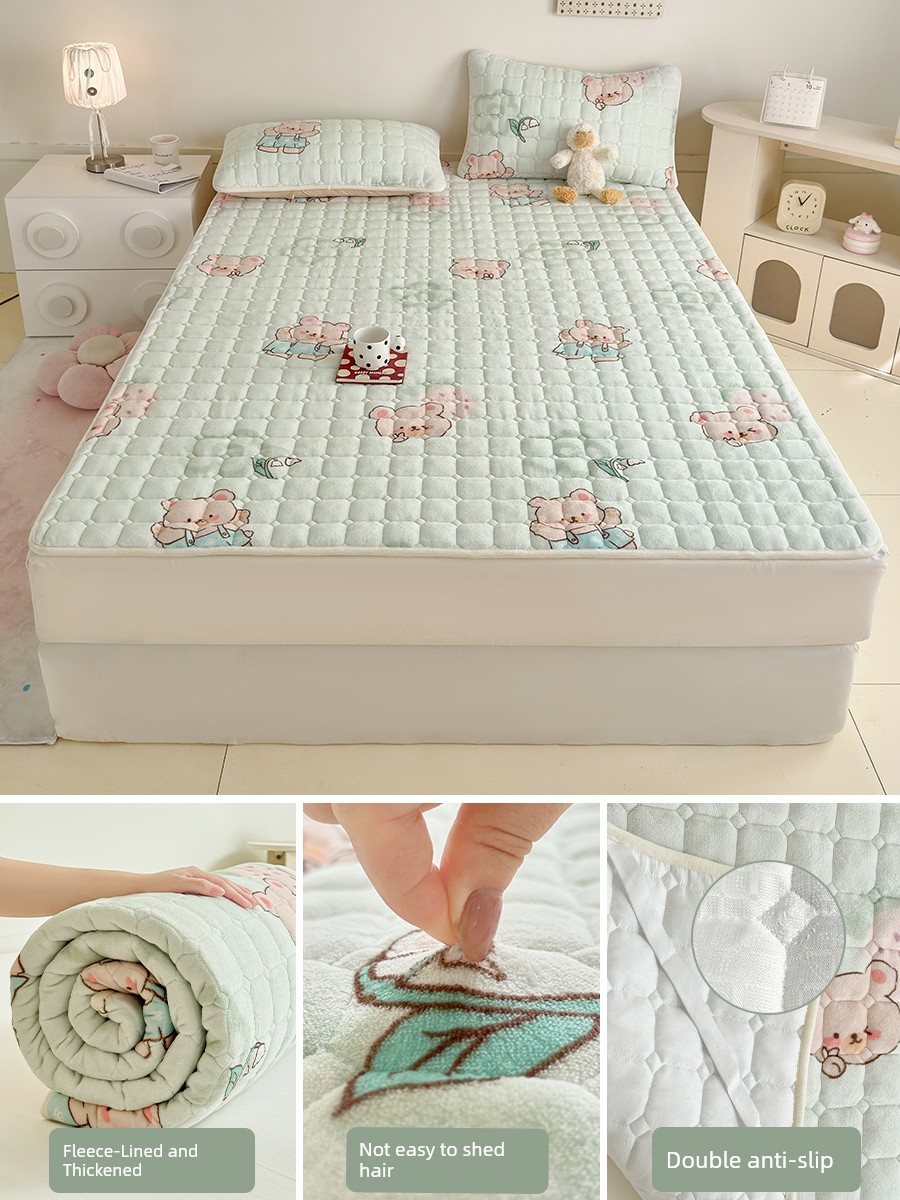 Milk Velvet Bed Sheet, Winter Fleece Single Piece, Autumn and Winter Coral Fleece Flannel Plush Thickened Quilt Cover Three-Piece Set for Single Bed