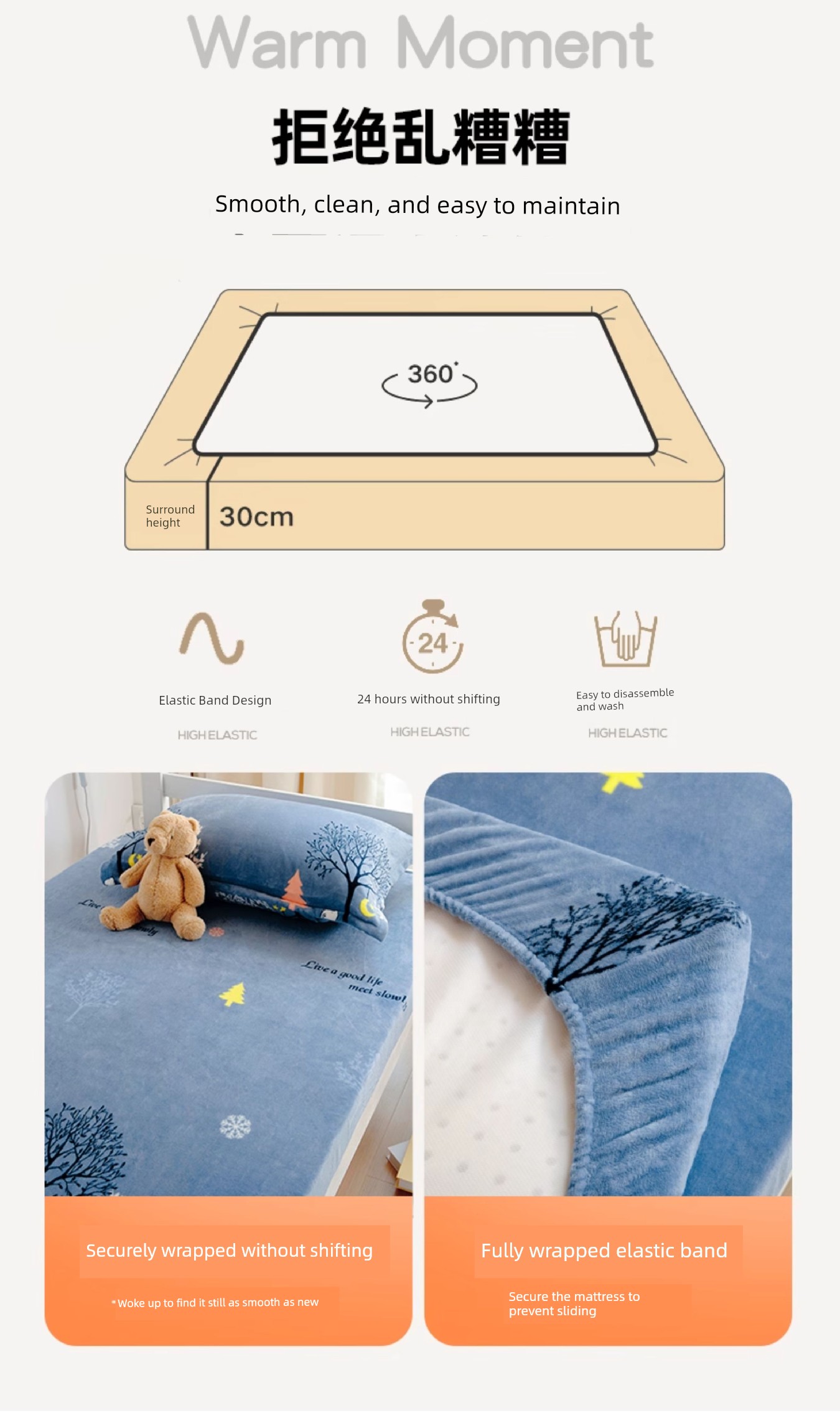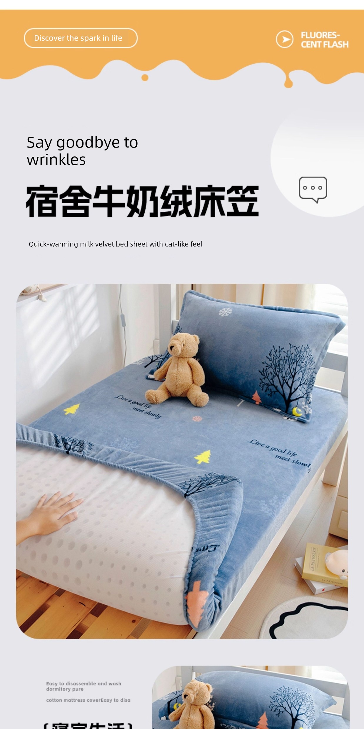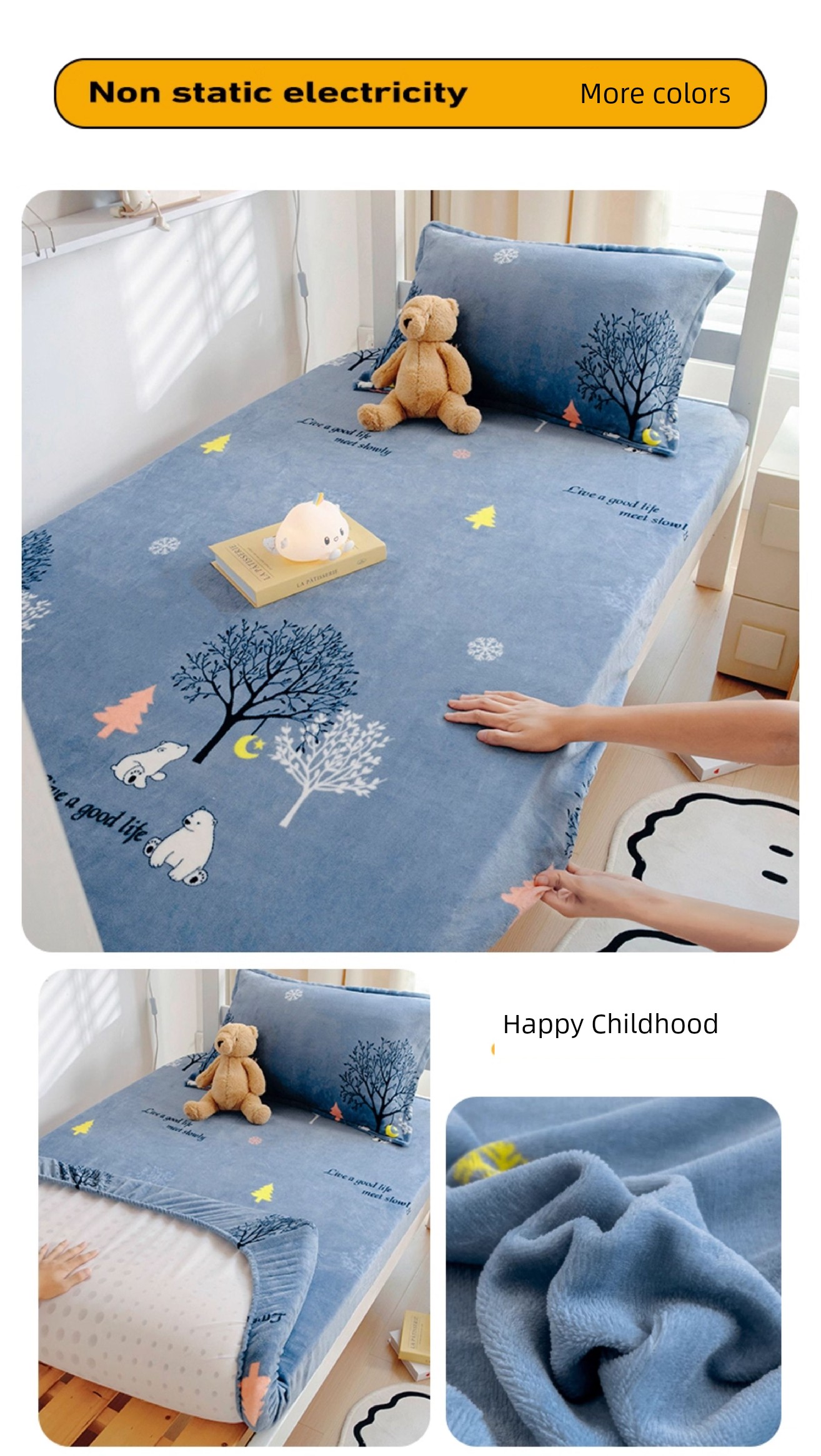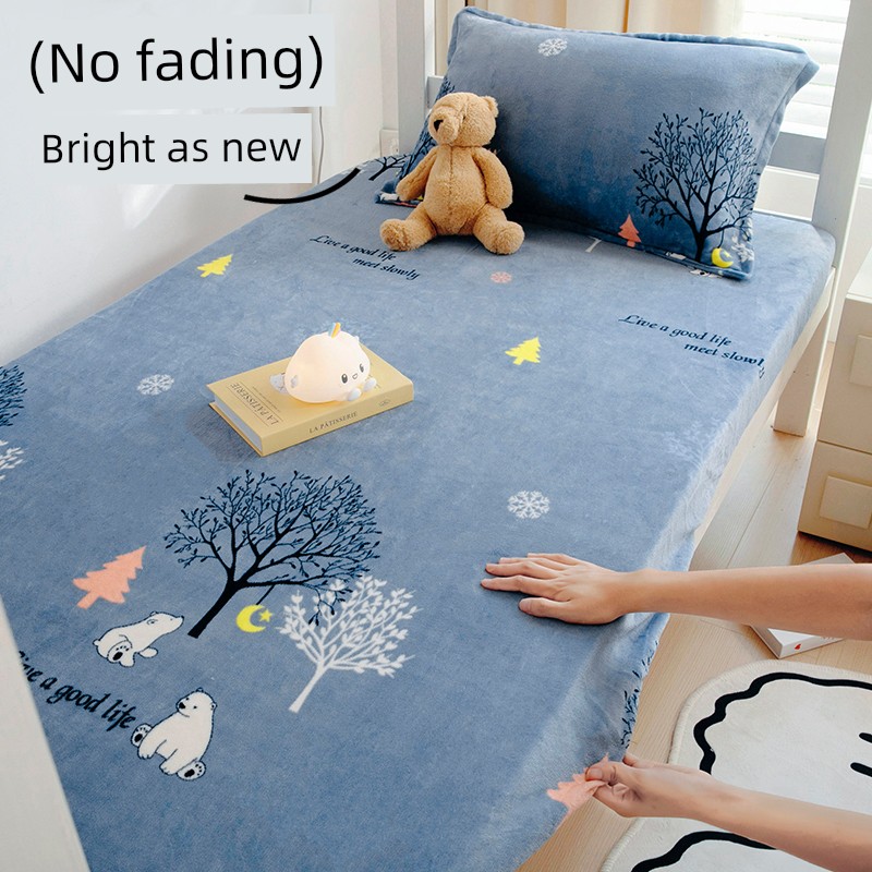 Student Dormitory Winter Milk Velvet Fitted Sheet Single Piece 90X190X200 Coral Velvet Fleece Thickened Mattress Cover