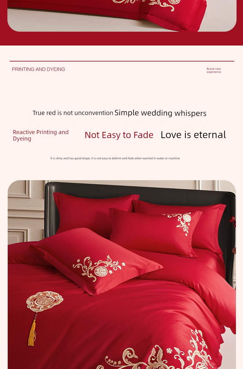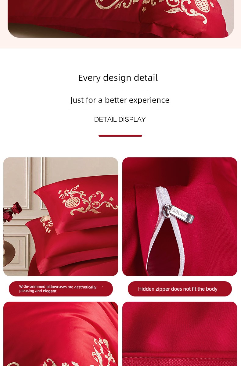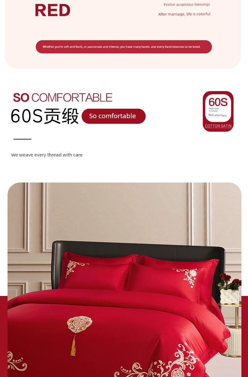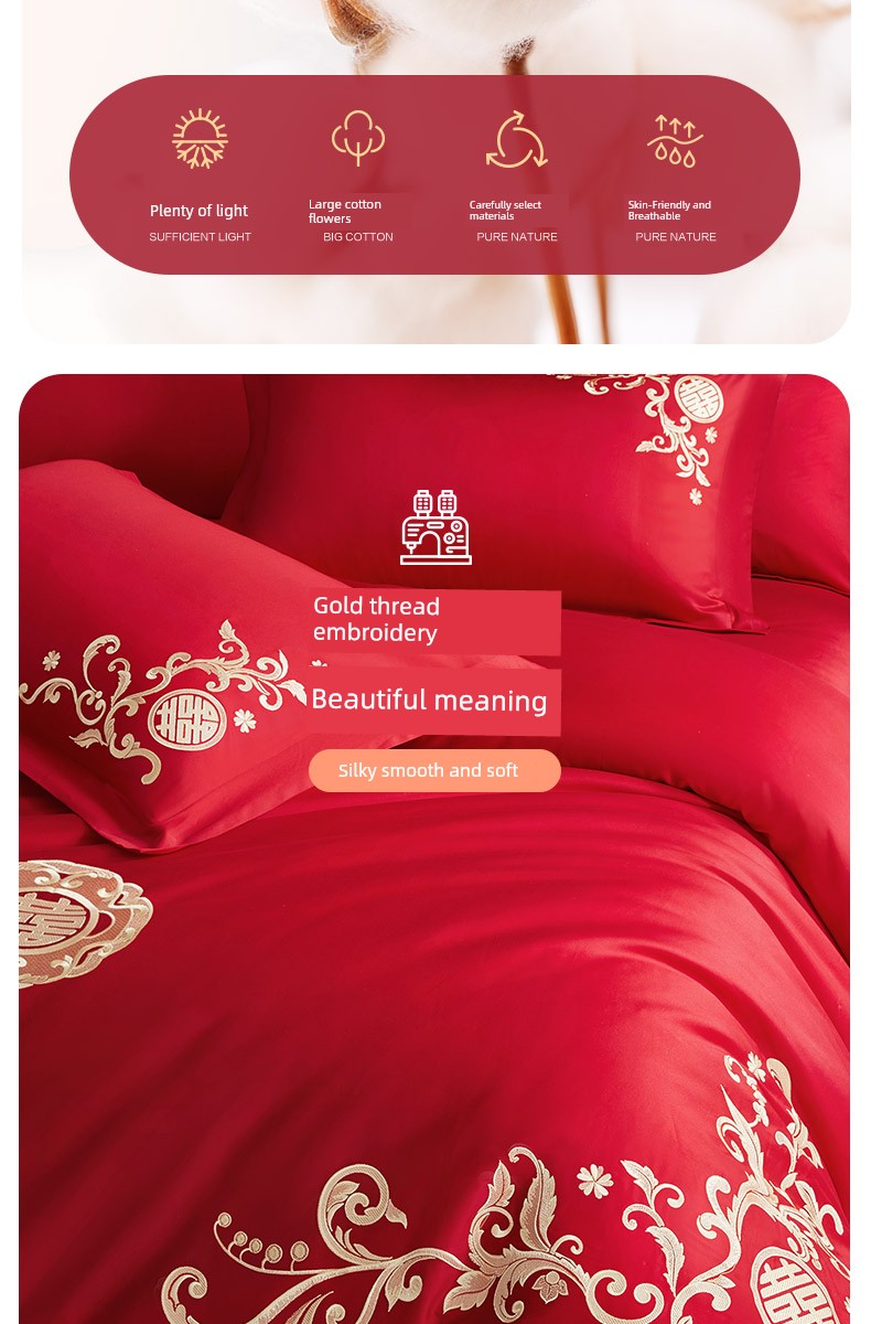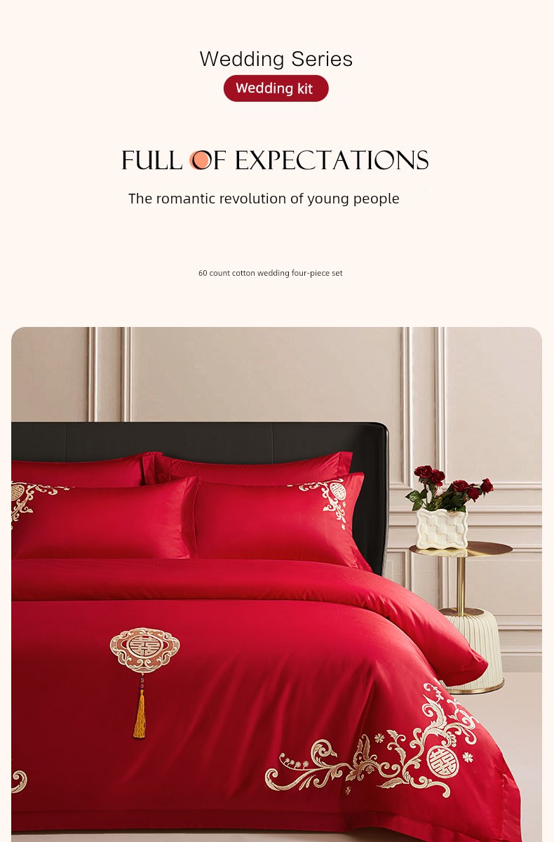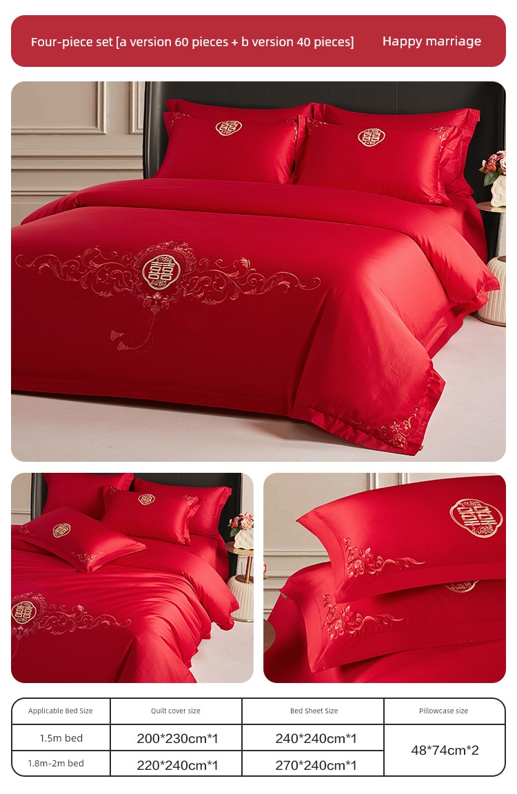 Boyang 60-Count Red Wedding Four-Piece Set, All-Cotton Bedding, Pure Cotton Wedding Quilt Cover, Festive
