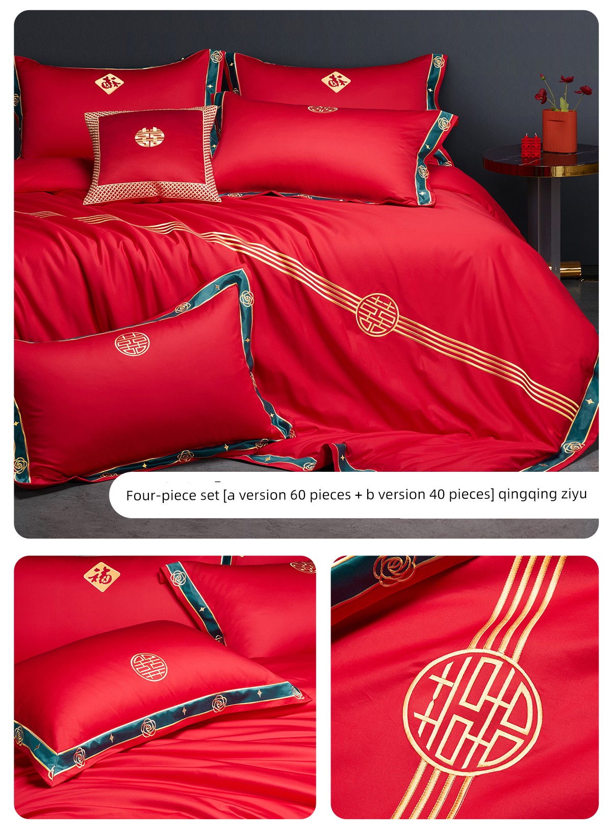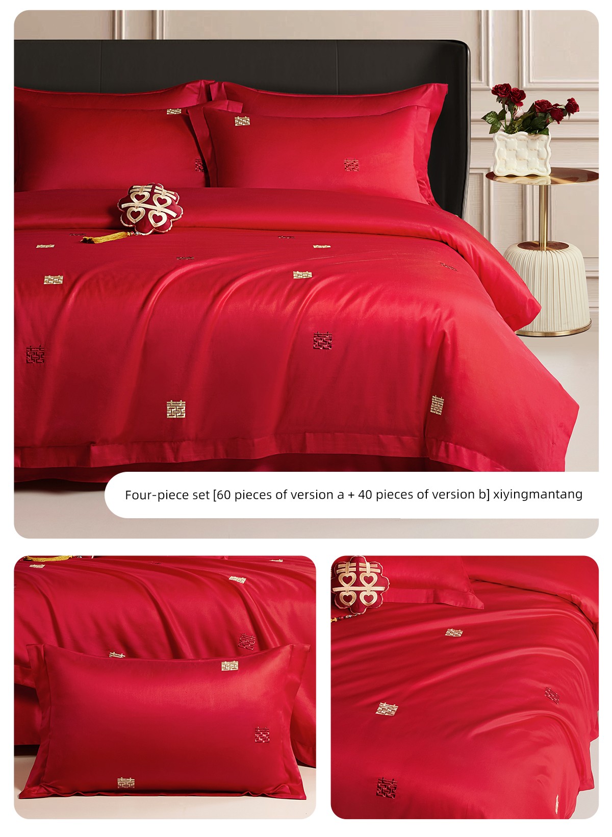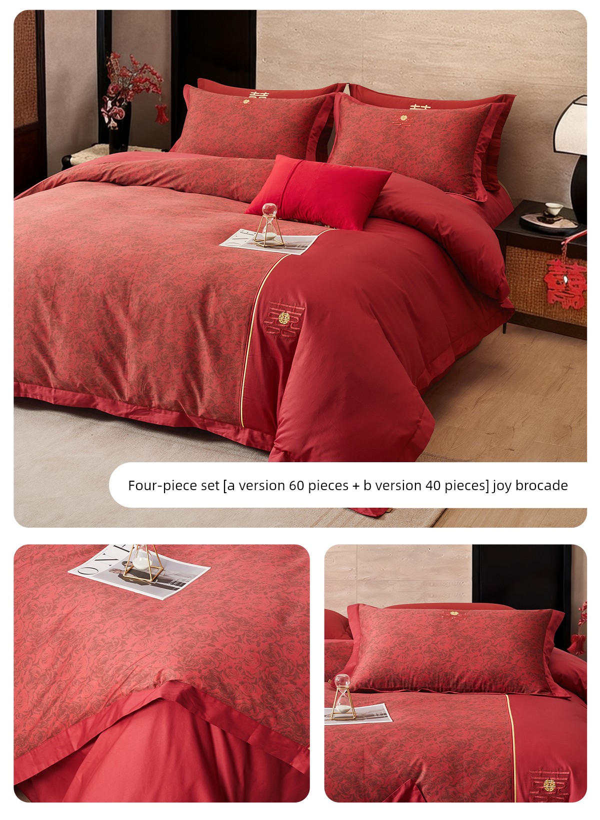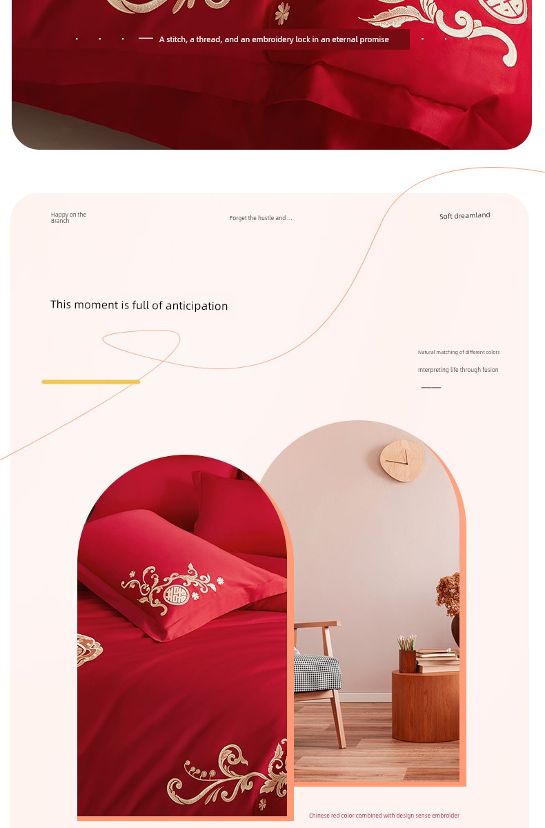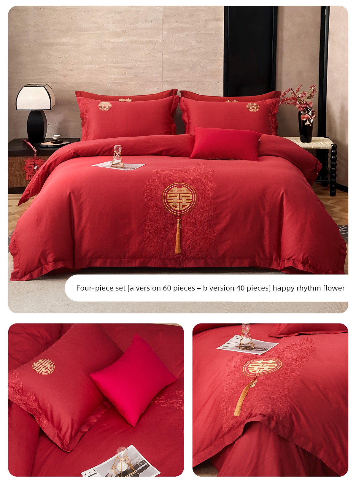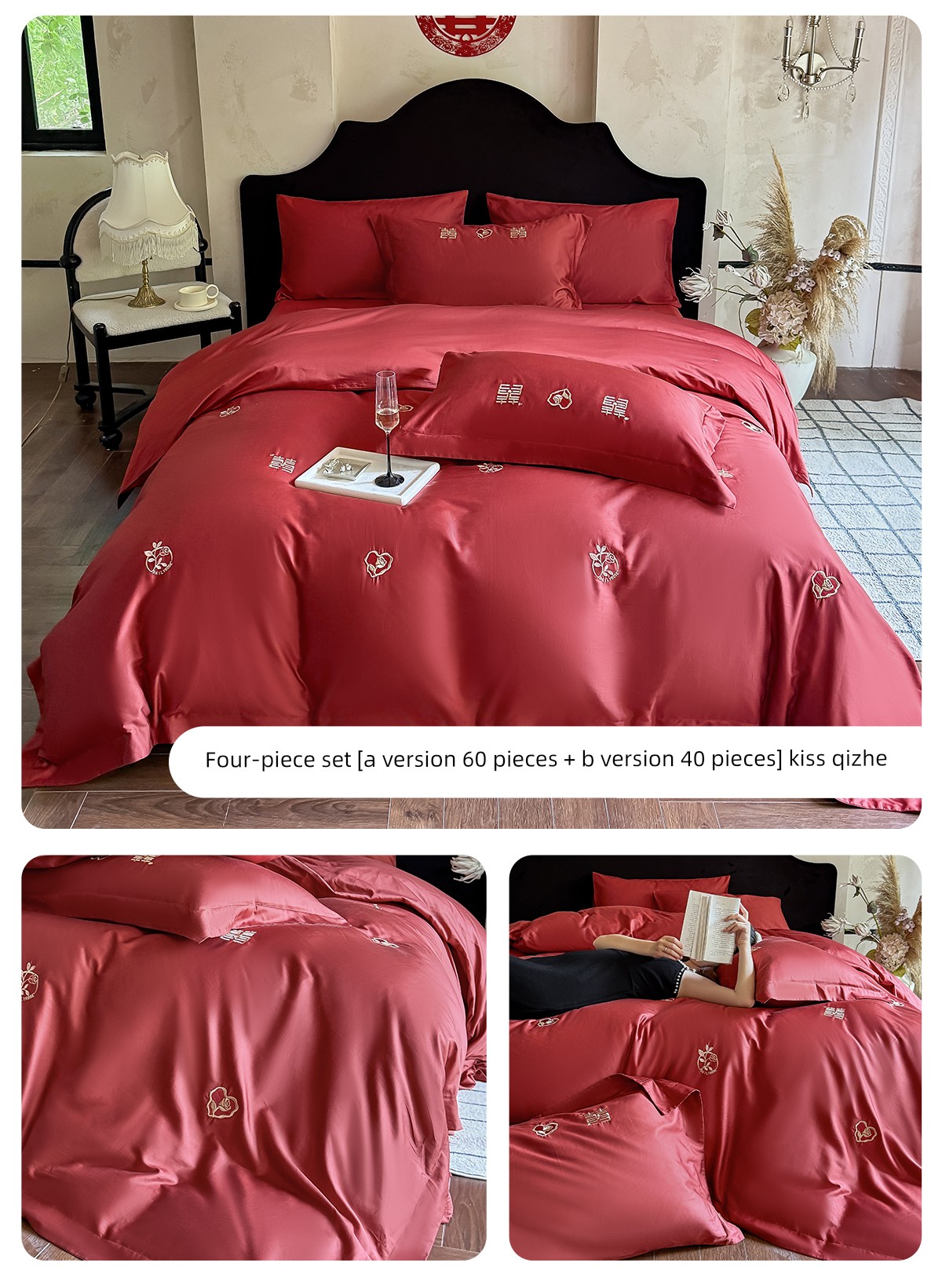 Boyang 60-Count Red Wedding Four-Piece Set, All-Cotton Bedding, Pure Cotton Wedding Quilt Cover, Festive