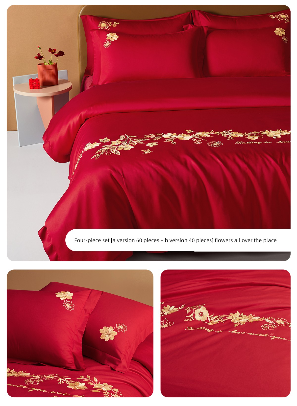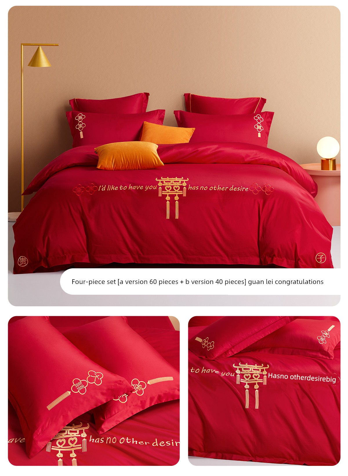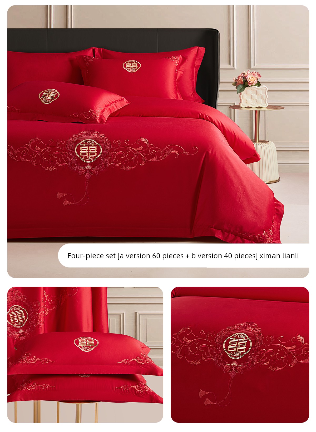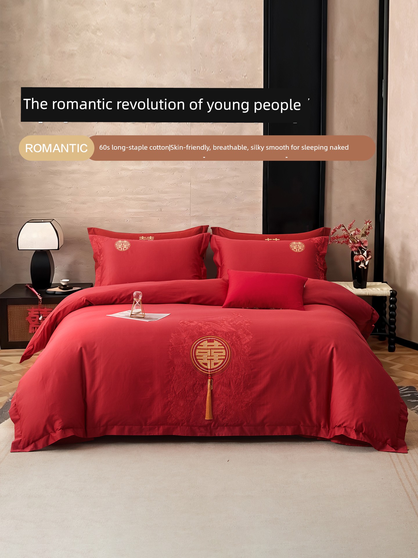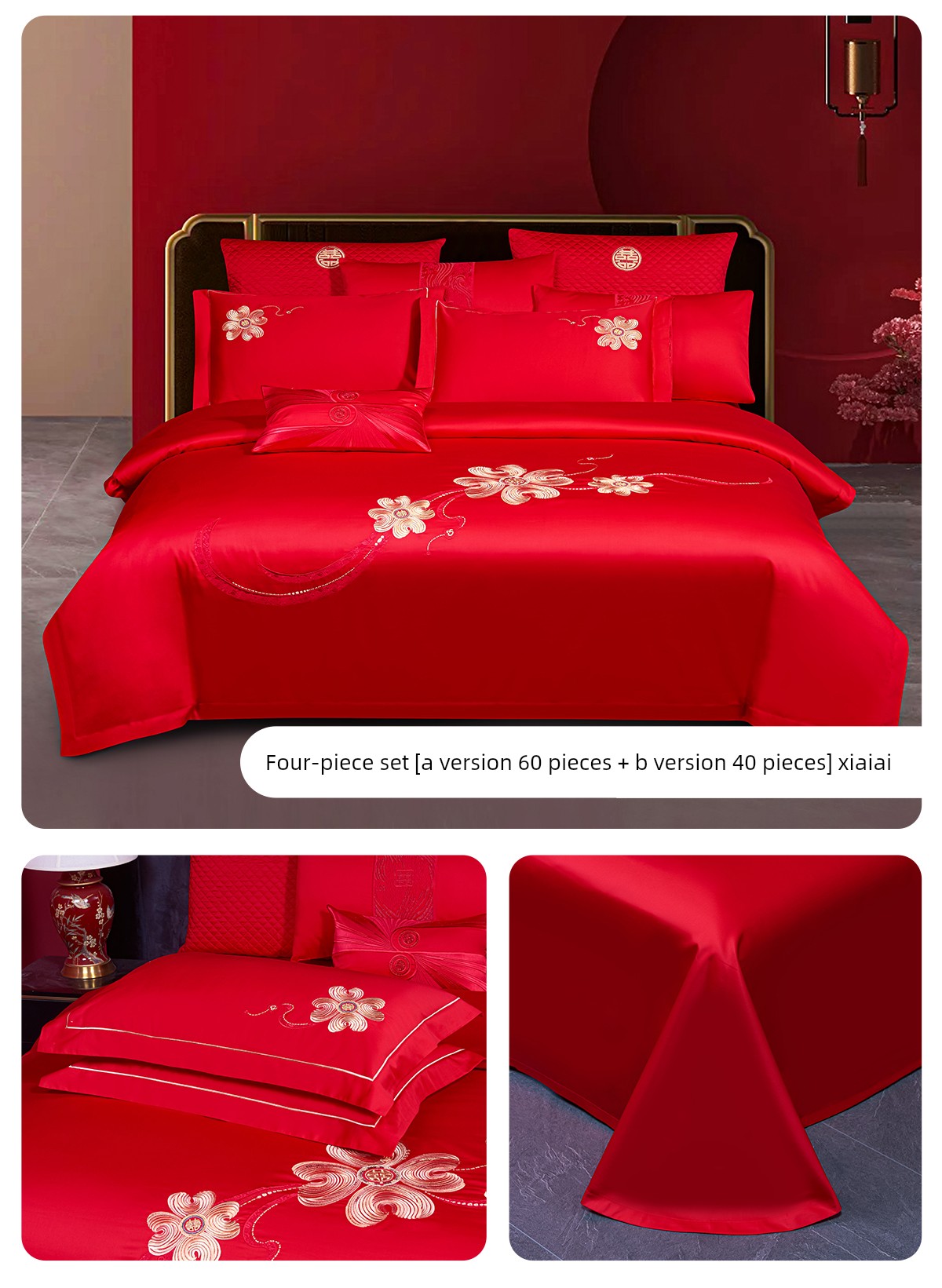 Boyang 60-Count Red Wedding Four-Piece Set, All-Cotton Bedding, Pure Cotton Wedding Quilt Cover, Festive
